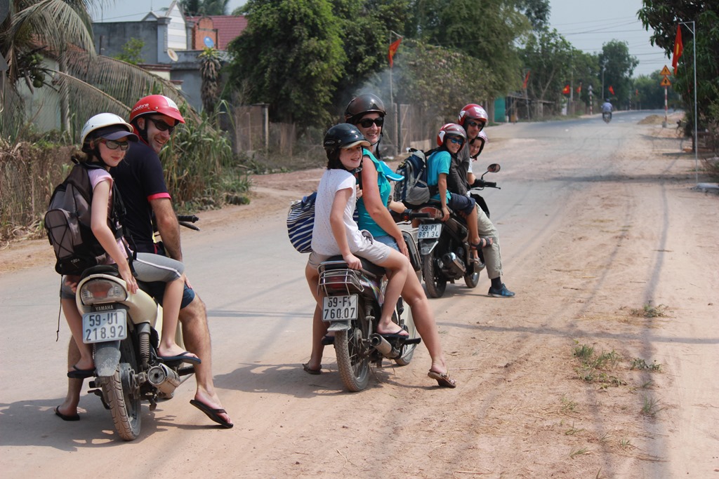 Premier Mai: Fête du travail: nous nous prenons trop tard pour partir en we un peu loin de Saigon alors direction Cuchi (haut lieu de la résistance communiste contre les américains, dans le sud) où nous retrouvons en fait Anne Sophie et Matthias et leurs 4 filles!