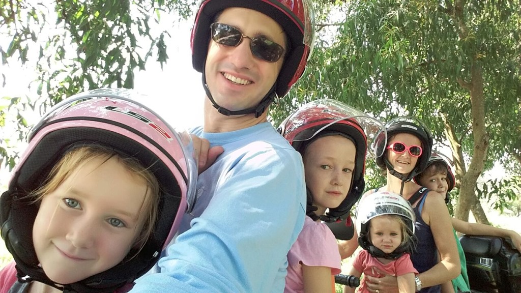Un peu près installés (mais toujours sans cuisine équipée, ce serait trop facile), nous voilà sur nos motos pour aller sur l’île juste en face de notre quartier de l’autre coté d’un bras du Mékong pour une balade au vert. En attendant d’organiser des we un peu plus loin!
