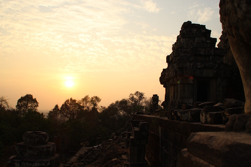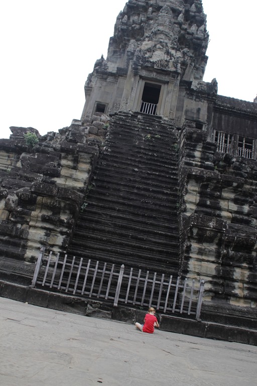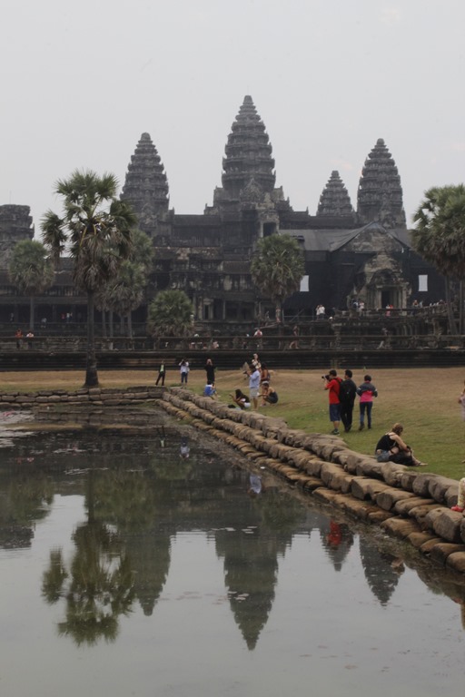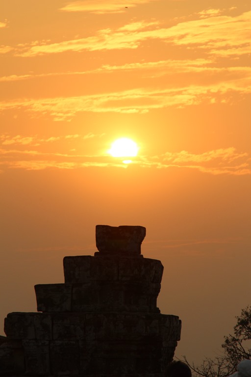 Le lendemain, nous nous levons à 4 heures du mat pour aller admirer le soleil se lever sur Angkor Vat. Tout le monde a adoré se lever à l’aube et avoir une immense journée devant soi! Avouons le, le levé du soleil ne fut pas extraordinaire, le ciel étant voilé.