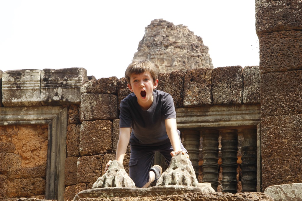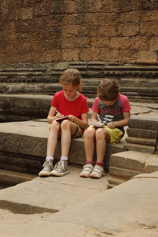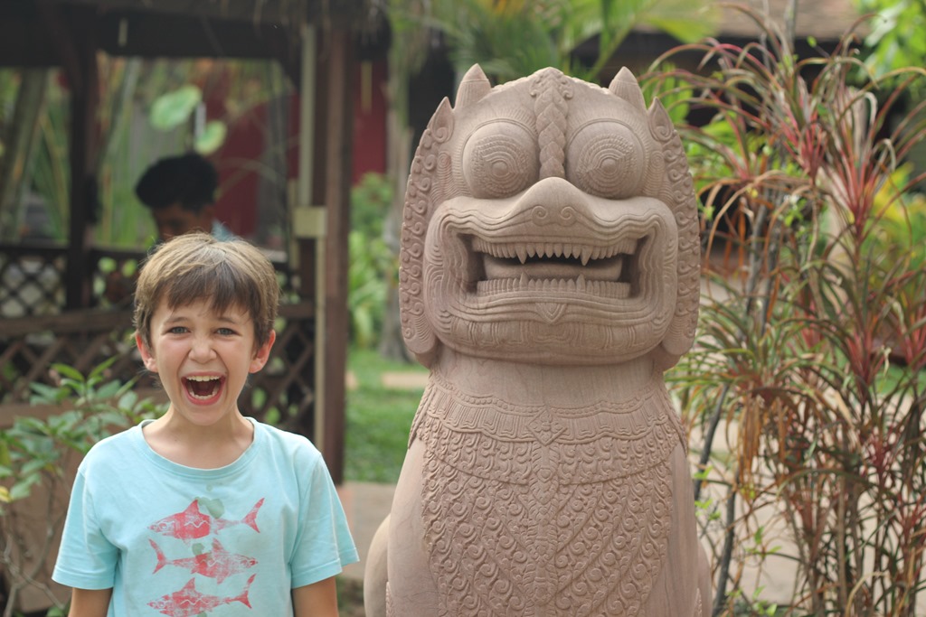 Nous avions emporté un excellent et très complet livre sur les temples. Aussi à chaque temple nous demandions aux enfants de trouver des figurines, des statues, des portes, des choses insolites…