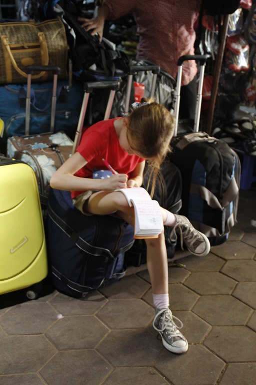 Visite du marché et Alix ayant retrouvé son carnet de voyage dessine, écrit tout et partout!