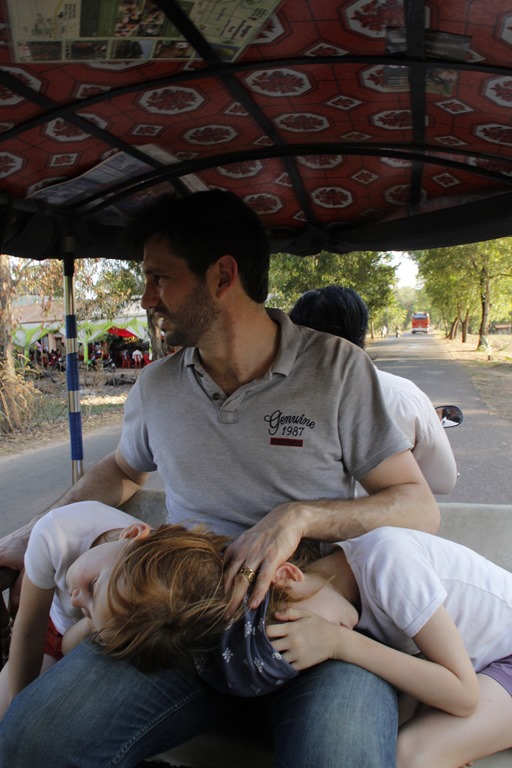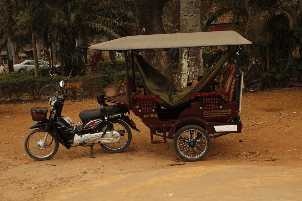 On repart pour Siem reap, l’état des troupes commençant à se dégrader…La chaleur est terrible et c’est un bol d’air frais dès que nous roulons avec le touc touc!