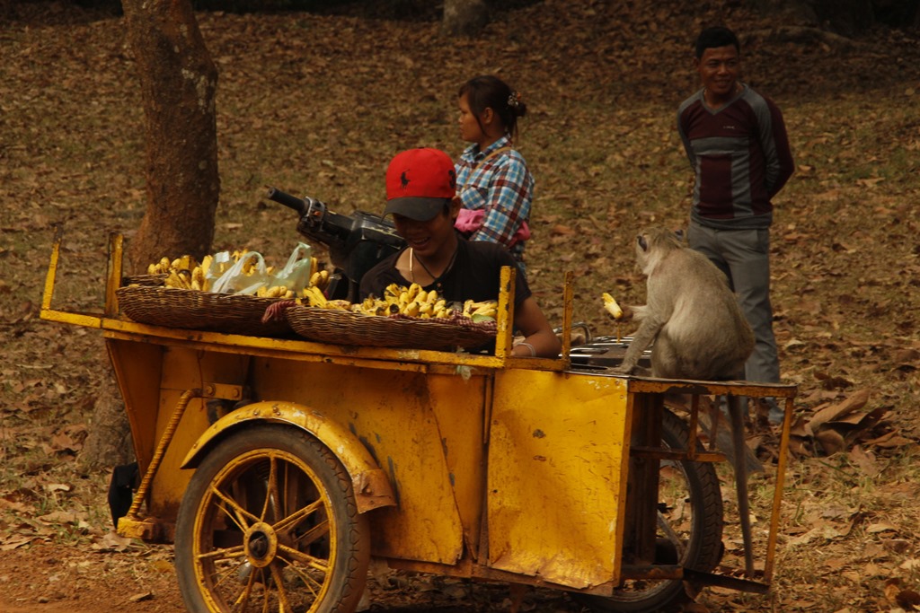 Avant d’arriver au temple: attraction… des singes sur le bords de la route!