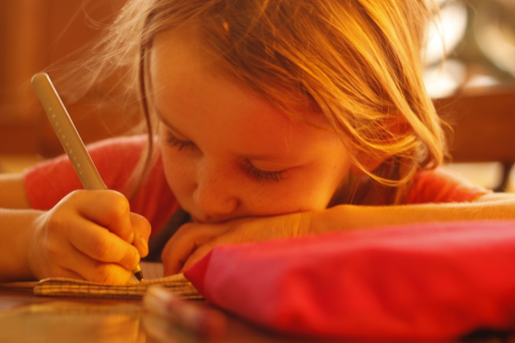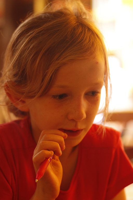Alix dessinant en bas d’un escalier un tant soit peu raide!