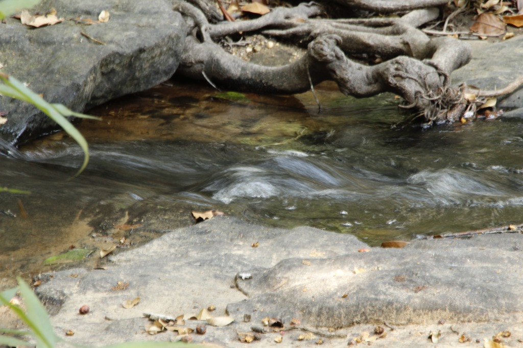 On voit assez bien la limite du feuillage: limite jusqu’à laquelle monte l’eau! On peut passer d’une profondeur de 1 mètre à 9 mètres!