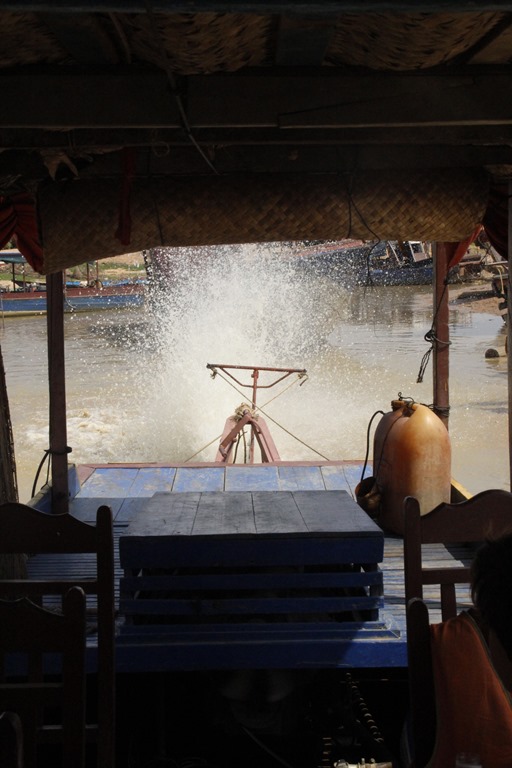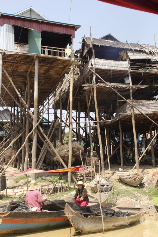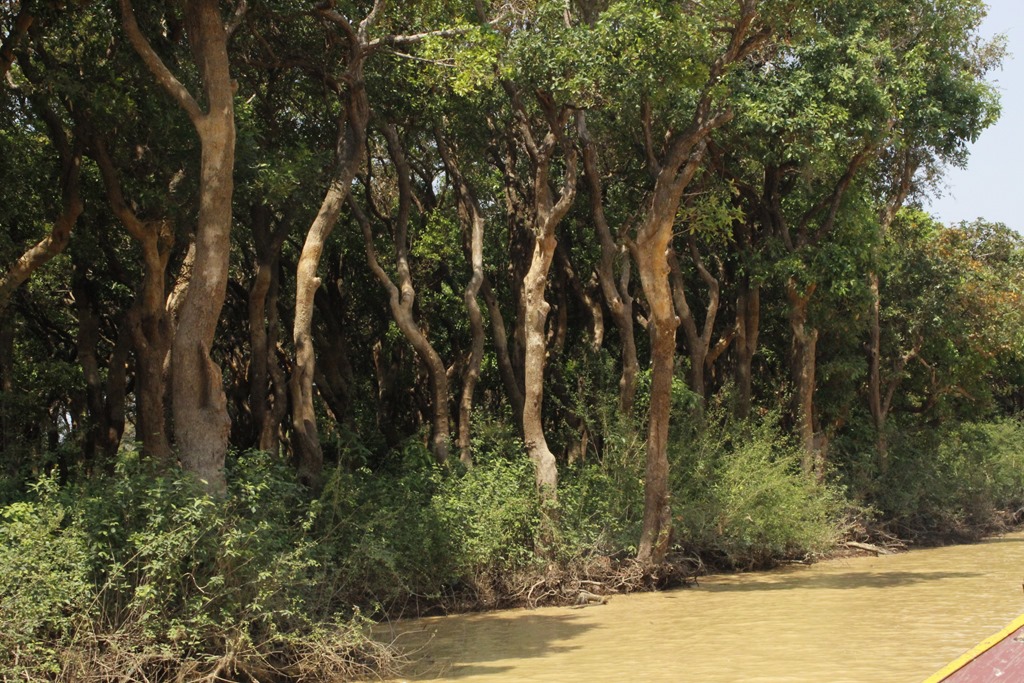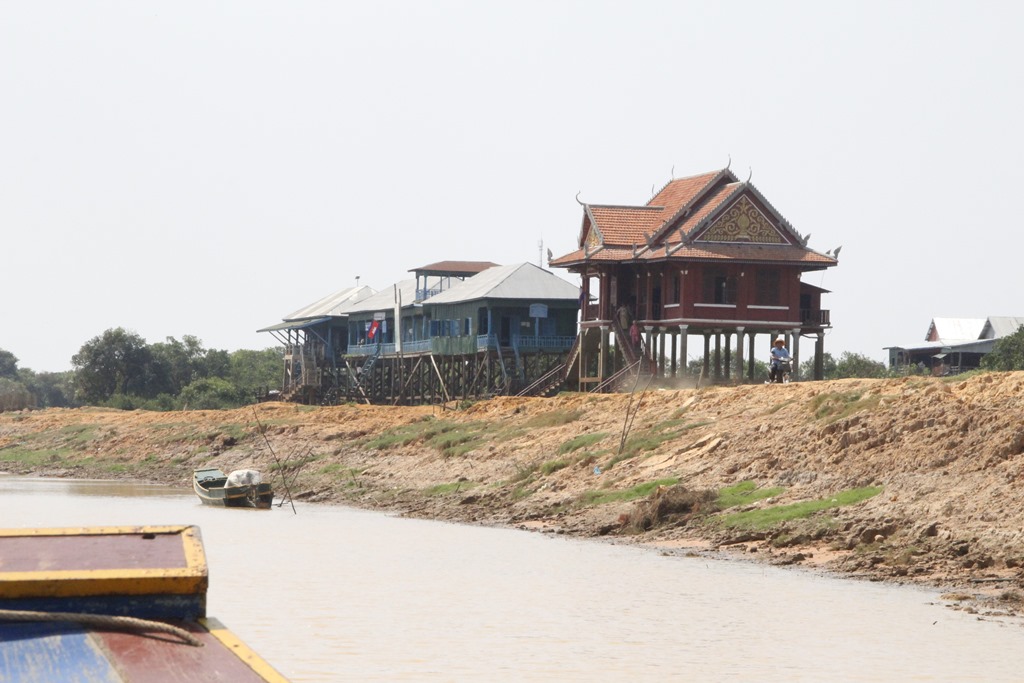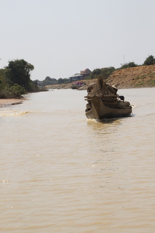 La crue fait que la rivière en basse saison coule vers le mékong (comme toutes les rivières au monde) alors qu’en haute saison elle remonte vers le lac… On appelle « retournements des eaux » les périodes où le cours de la rivière Tonlé Sap s’inverse, une fois par an dans chaque sens (mai et novembre).