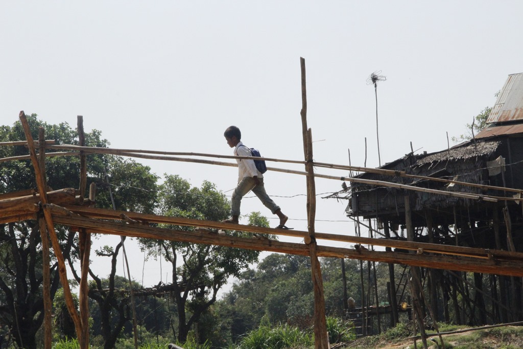 En fait ses maisons sont sur pilotis car en période de crue la rivière monte énormément recouvrant tout et envahissant forêts et champs alentours (la terre y est donc très fertile en basse saison).