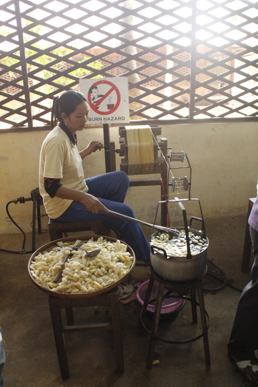Puis c’est le jour du départ. Comme nous partons assez tard nous allons vister la ferme de la soie pour comprendre le processus de transformation depuis les cocons de soie jusqu’à la vente de la belle écharpe en soie pure ou sauvage