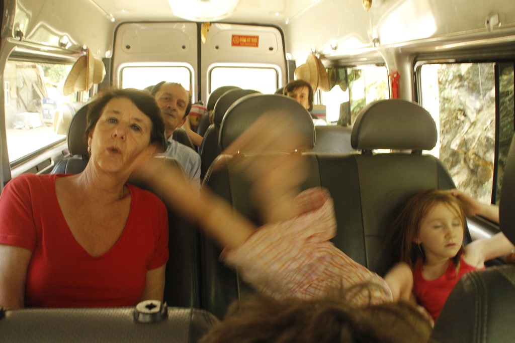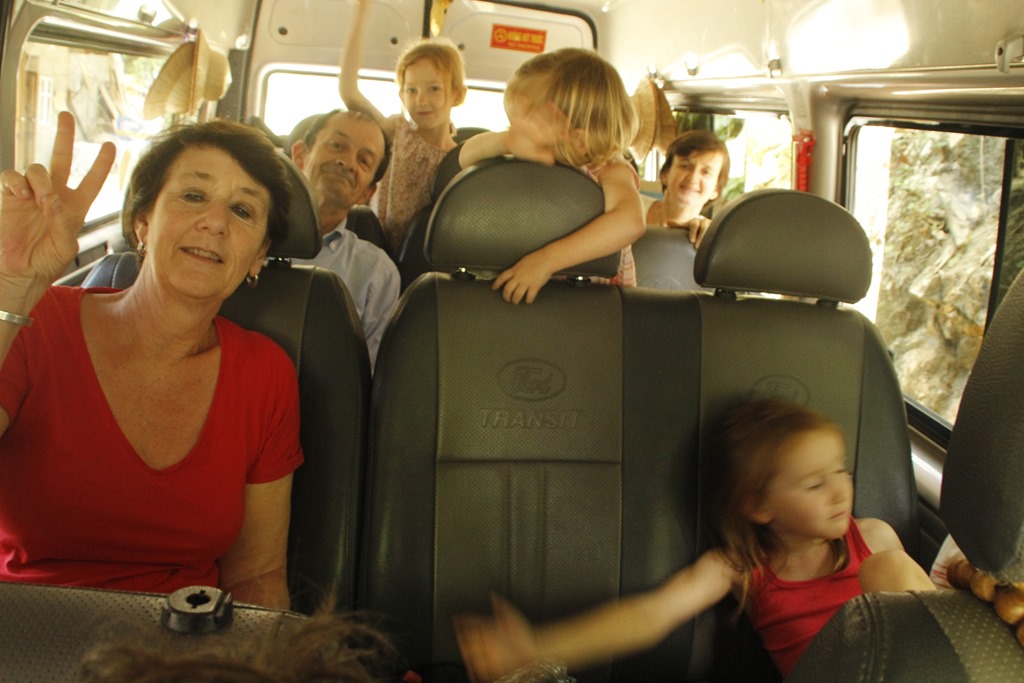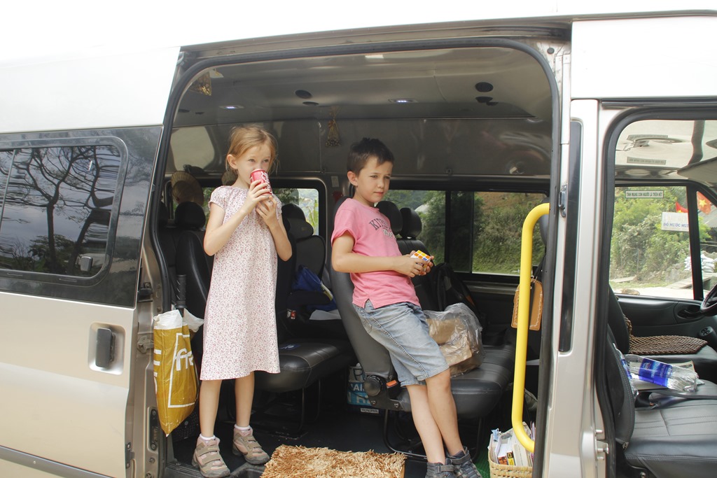 Petite photo dans le bus: les voir comme ca dans un mini bus cela m’a souvent rappelé notre “bato” de notre voyage en Amérique Latine dans notre boxer aménagé (ici). Les enfants ont un peu grandi!