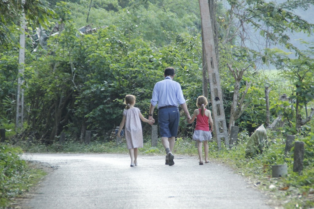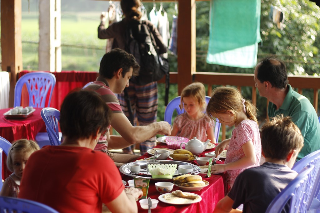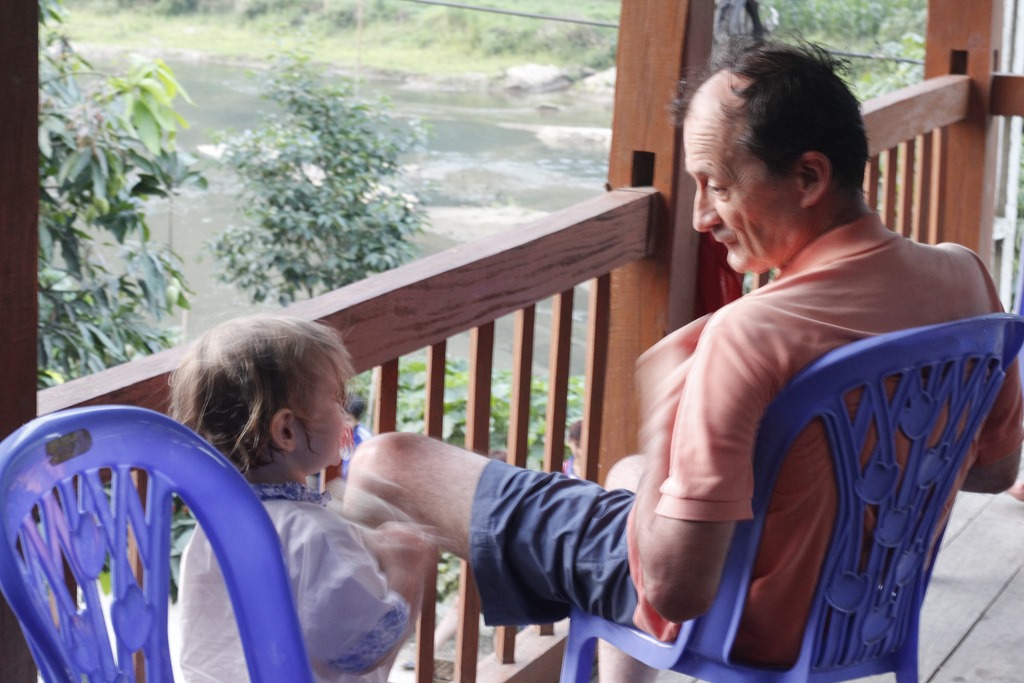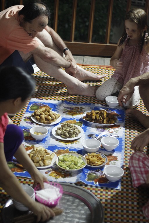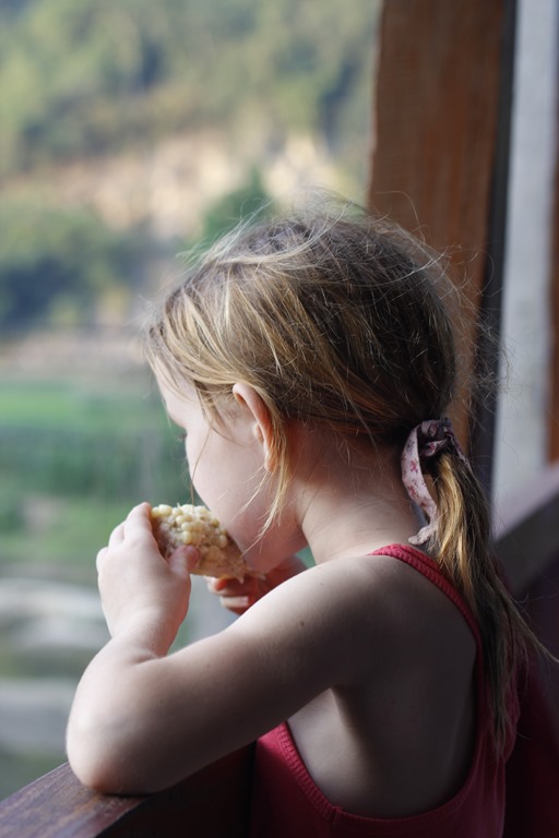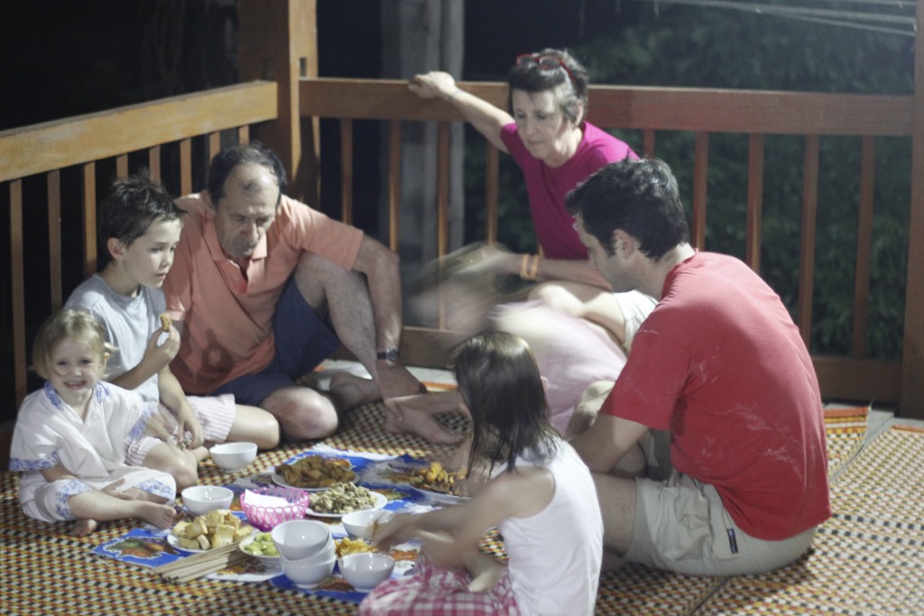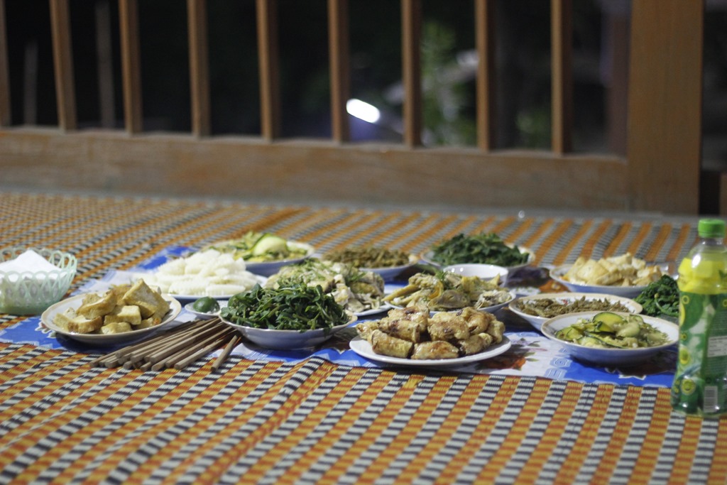 Et nous voilà arrivés dans notre cagna. Une maison sur pilotis (sans buffle en dessous mais des ronfleurs à coté) avec une terrasse, une grande pièce pour l’autel des ancêtres qui a été aménagée à coups de planches de contreplaqués pour en faire 6 chambres (!!!), un couloir, une autre pièces, deux douches aux portes ajourées, une cuisine au feu de bois. Ambiance locale super sympa!