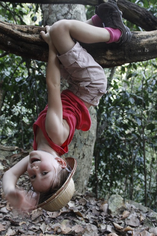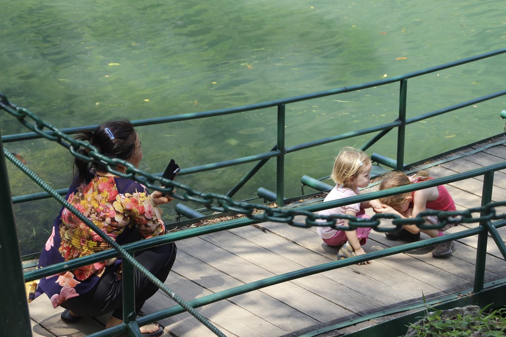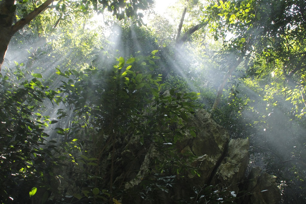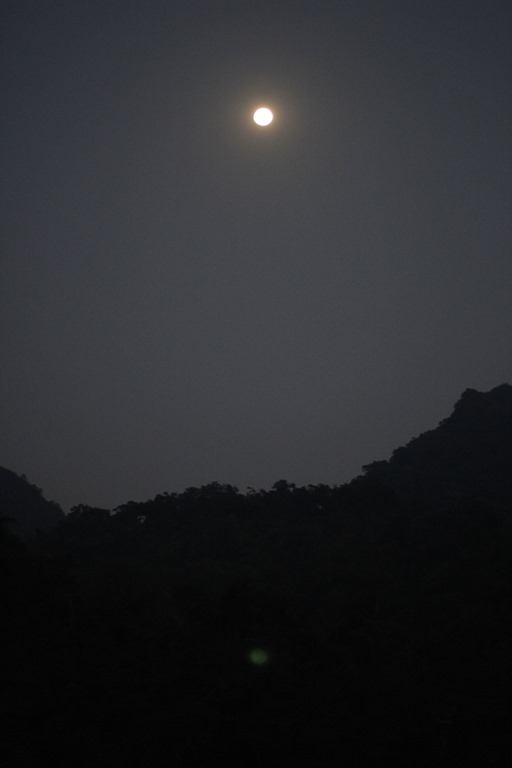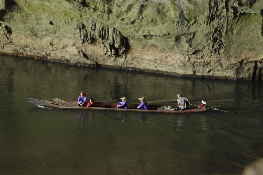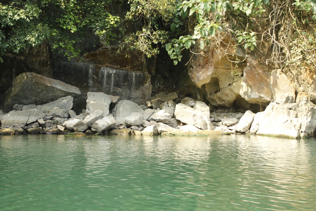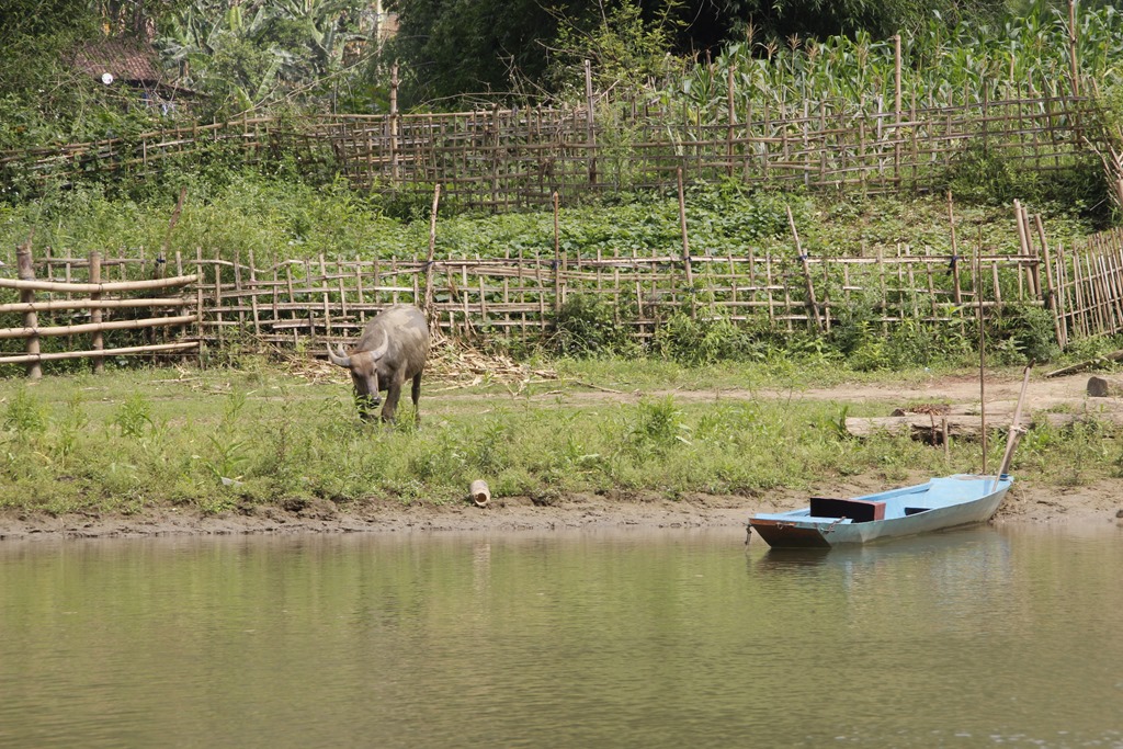 Après 3 heures de bonne route, malgré un orage carabiné, une chute à moto, un bus comme le notre embouti par un camion, des trombes d’eau, des rizières et des buffles nous voilà dans le parc national de Babé: la jungle, un lac, 3 baies (do’ou Ba Bé pour vous qui parlez couramment viet).