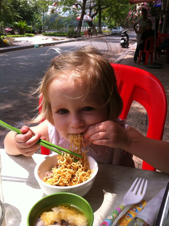 Et nous finissons souvent nos sorties dans un petits resto viet dont Violette raffole! Bun Cha, Pâtes frisées…A la baguette!