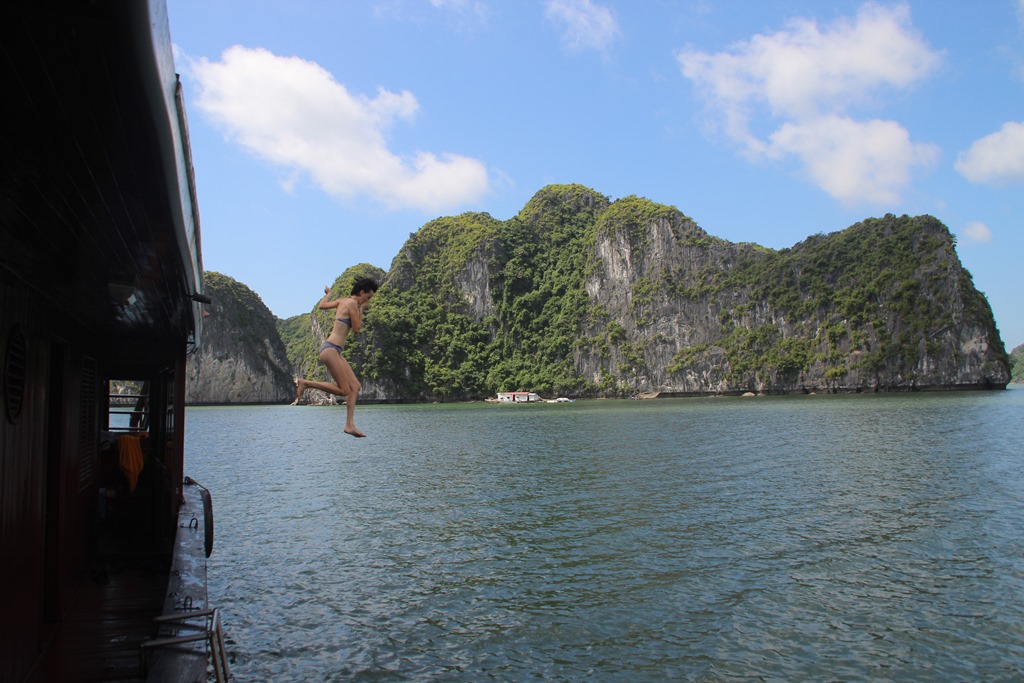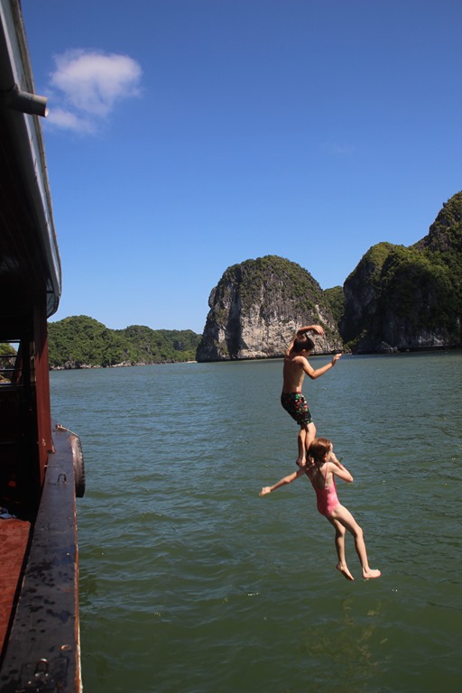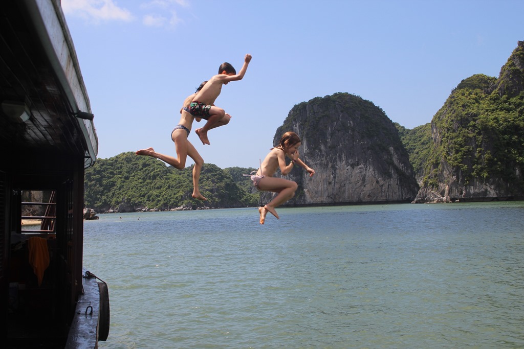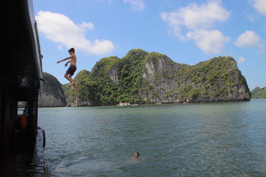 Dernier we de l’année scolaire… On se décide à sortir d’Hanoi pour s’embarquer le temps d’un we sur un bateau dans la baie d’Along…Le rêve!