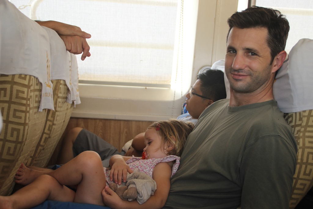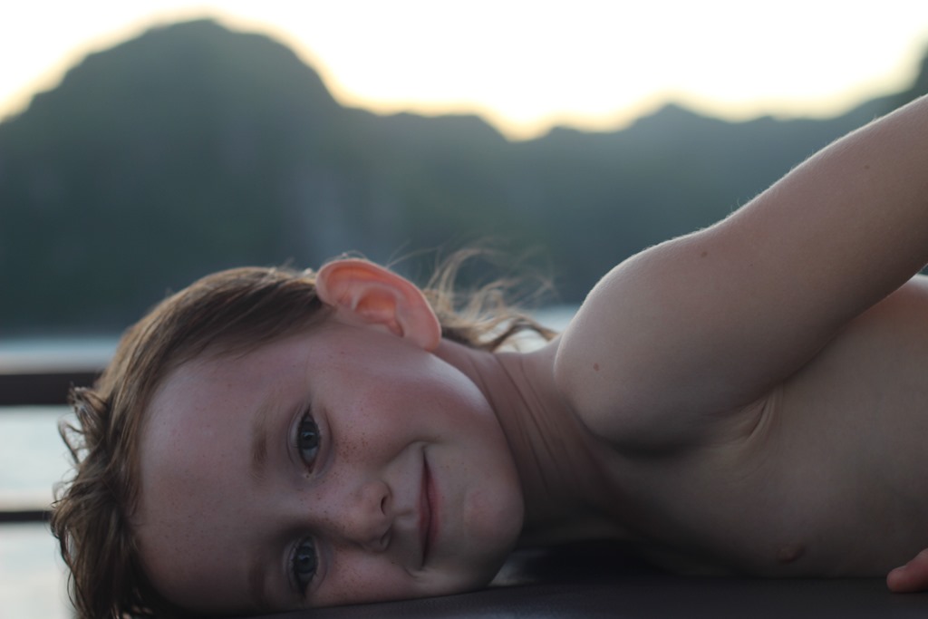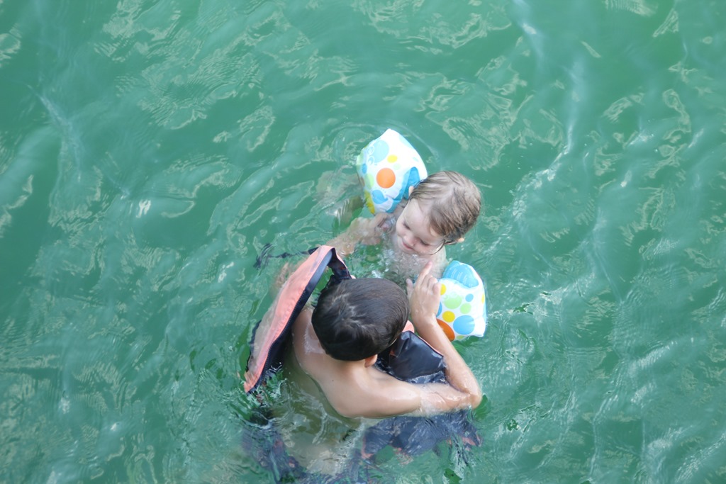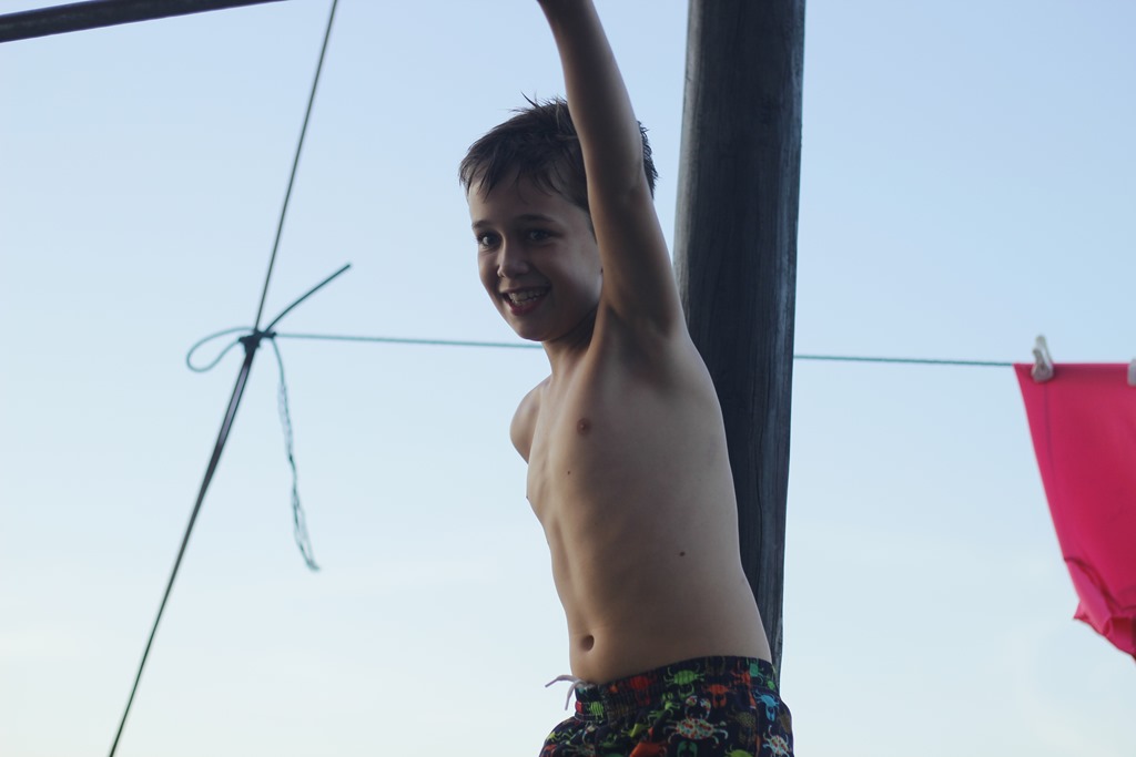 On ne résiste pas à l’envie d’un dernier plongeon: Et Camille réussit in extrémis à sauter de haut du bateau. Bravo choupette!