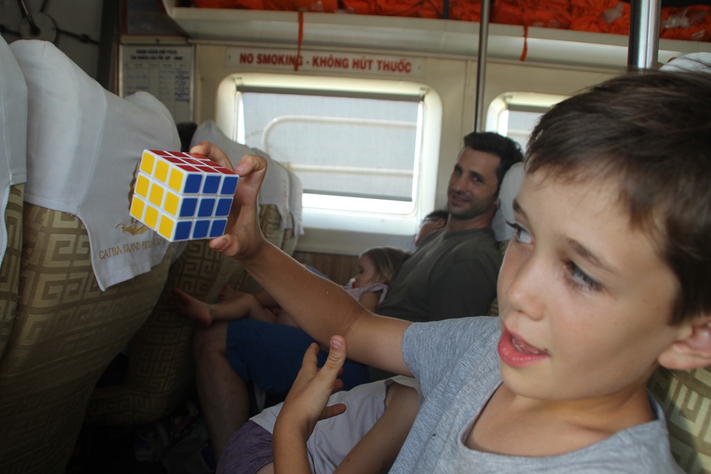 A 8.30, samedi, notre minibus nous attend au bout de la rue, direction Haiphong pour prendre le “speedboat” qui nous emmènera sur l’ile de Cat Ba pour embarquer à bord de notre bateau pour une nuit en baie d’Along