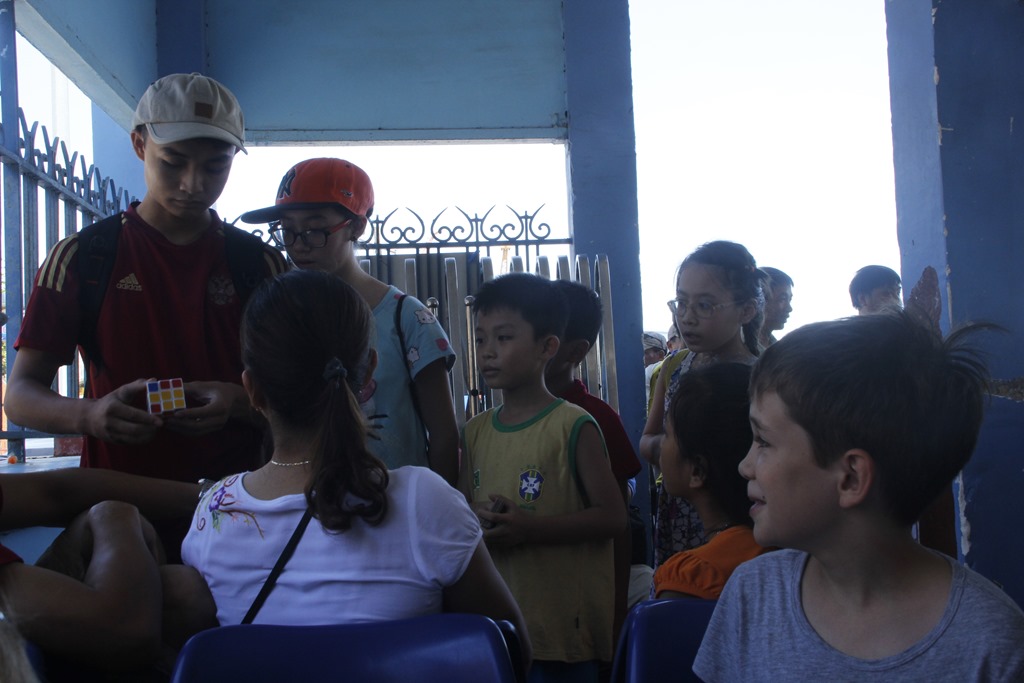 Le but de Malo: savoir faire son rumixcube à la fin du we. Il s’entraine et un jeune lui montre et explique!!!