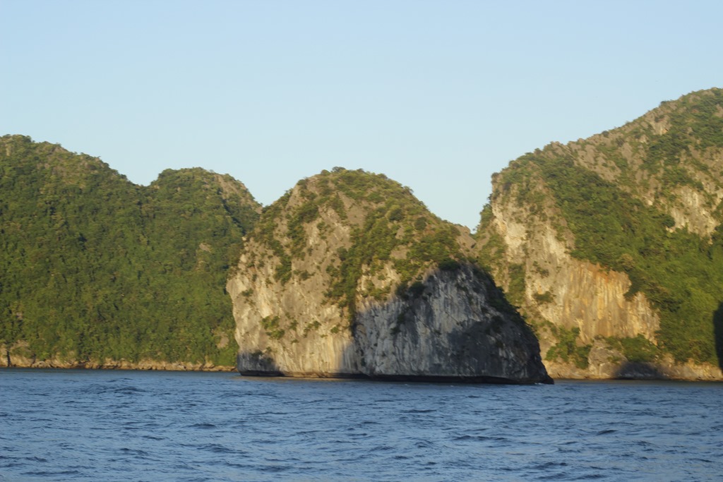 Dans une crique nous avons pris des kayak pour passer sous ce rocher et arriver sans deux criques fermées. La seconde était tellement fermée que l’eau était vraiment chaude et donc pleine de… MEDUSES! Il n’y avait pas un coup de rame sans qu’une méduse glisse sur le bois! Mmmmmm je comprend mieux pourquoi notre guide ne voulait pas qu’on se baigne!
