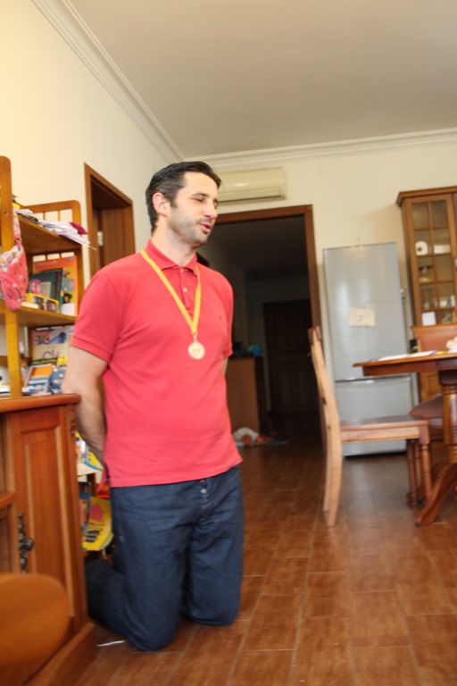 C’est Ben qui officie en tant que maire: chemise boutonné jusqu’en haut, raie au milieu…
