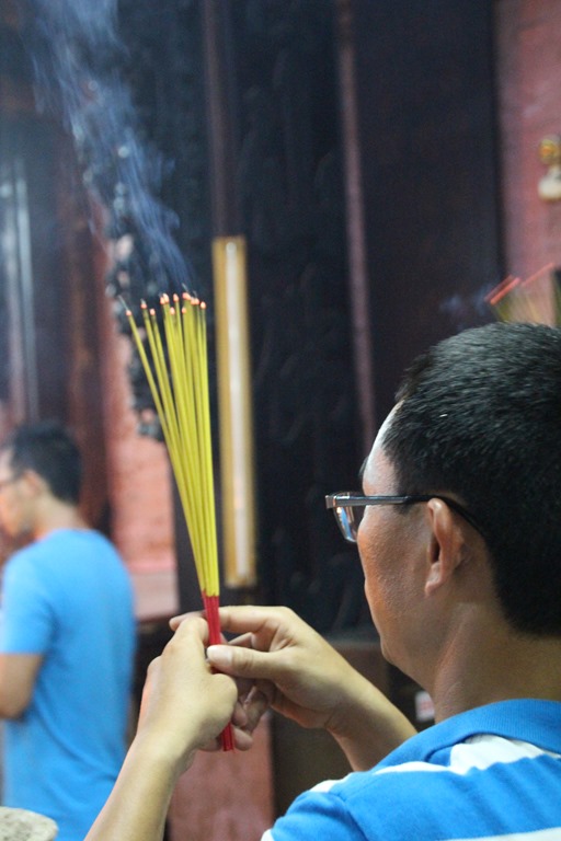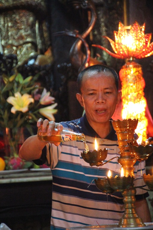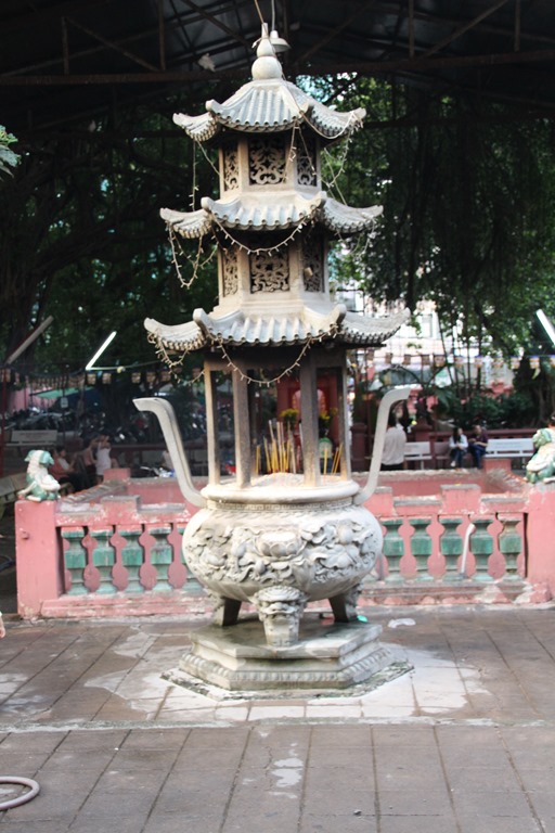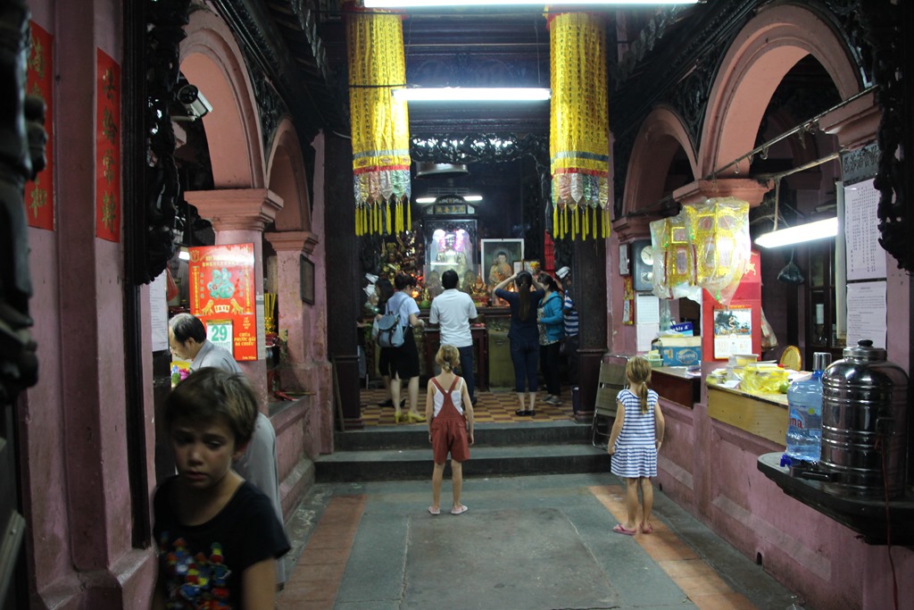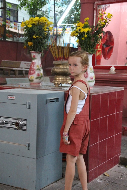 Pour fêter ça, nous allons visiter une pagode. Visite écourtée puisque Alix oublia son appareil photo dans le taxi. Retour à la case départ pour retrouver le taxi qui nous rendit l’appareil!!!