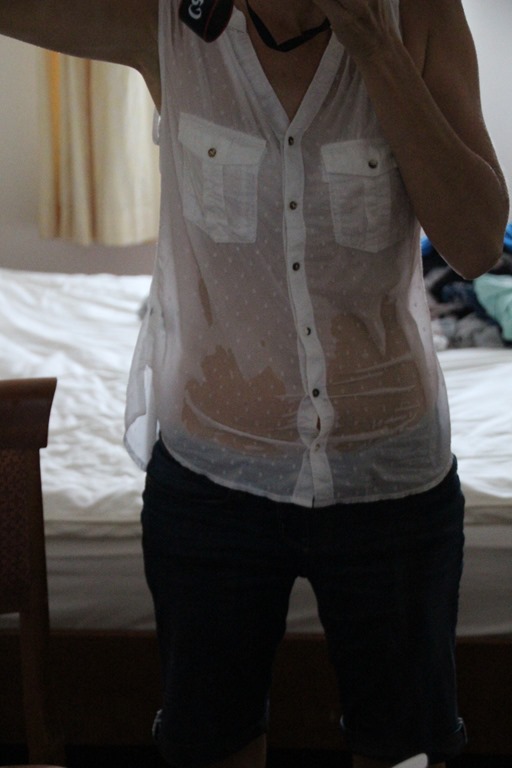 Pas de bol j’avais un haut blanc ce jour-là…dans les embouteillages sous des trombes d’eau!
