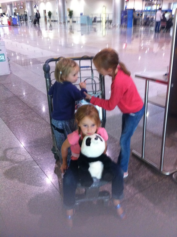 Ca y est on y est! On récupère nos bagages: Tous, (!!) après avoir cru avoir perdu notre valise de fournitures et cadeaux!! Bobby le panda est là!