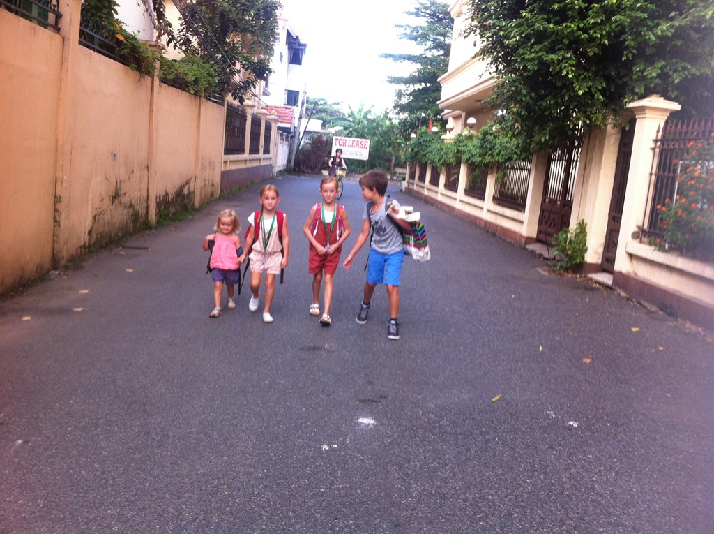 Et le grand jour de la rentrée est arrivée. Ben étant à Hanoi, j’accompagne tout le monde en montant dans le bus scolaire.