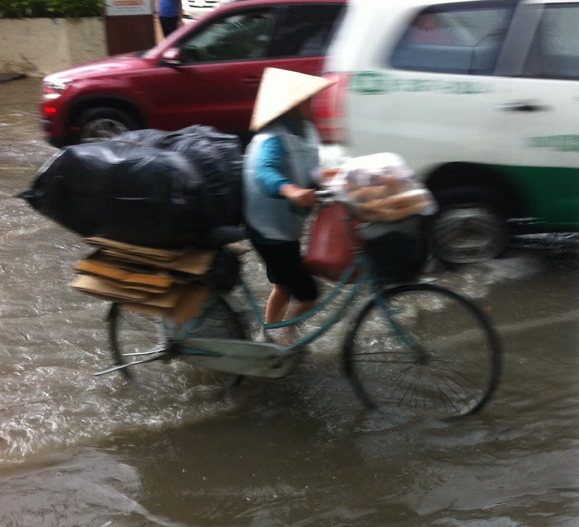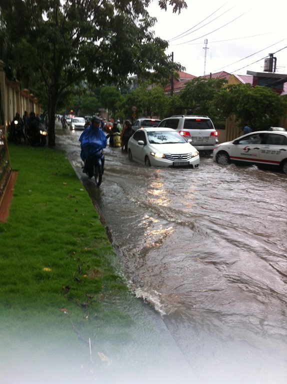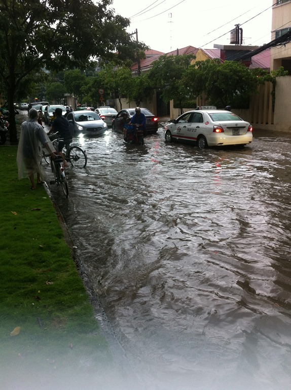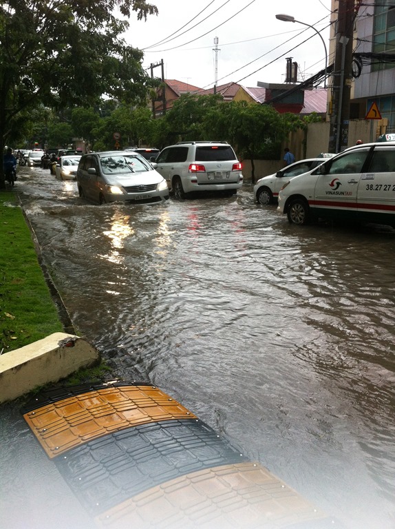 En 5 secondes exactement j’étais trempée à tordre, roulant avec de l’eau quasiment jusqu’aux chevilles! Ah c’est donc ça une saison des pluies!!