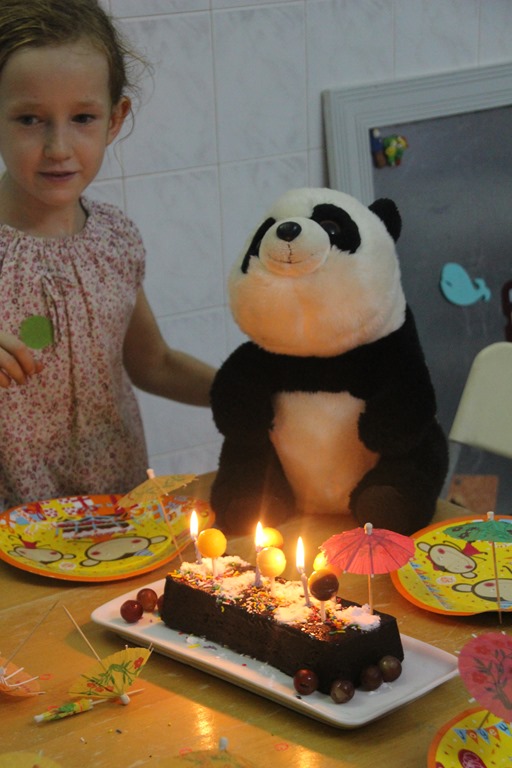 Après le mariage de Kiki et Lucie, c’est l’anniversaire de Bobby le panda d’Alix. Anniversaire en grandes pompes avec confection du gâteau, assiettes d’anniversaire, bougies, cadeaux…