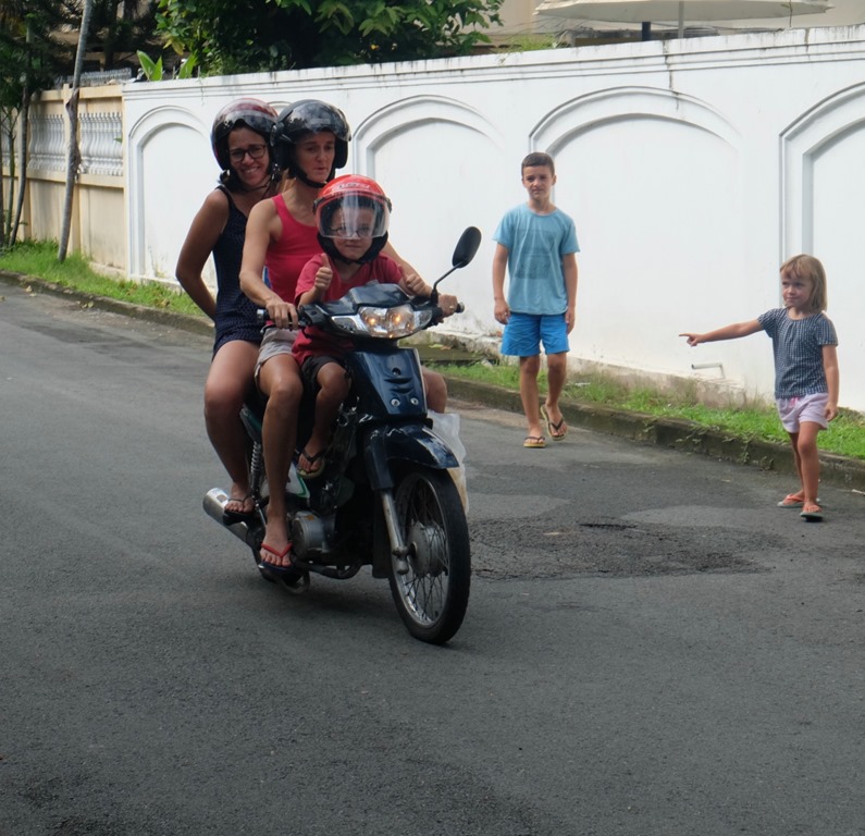 Avant leur départ pour le delta du Mekong, petites courses en moto!