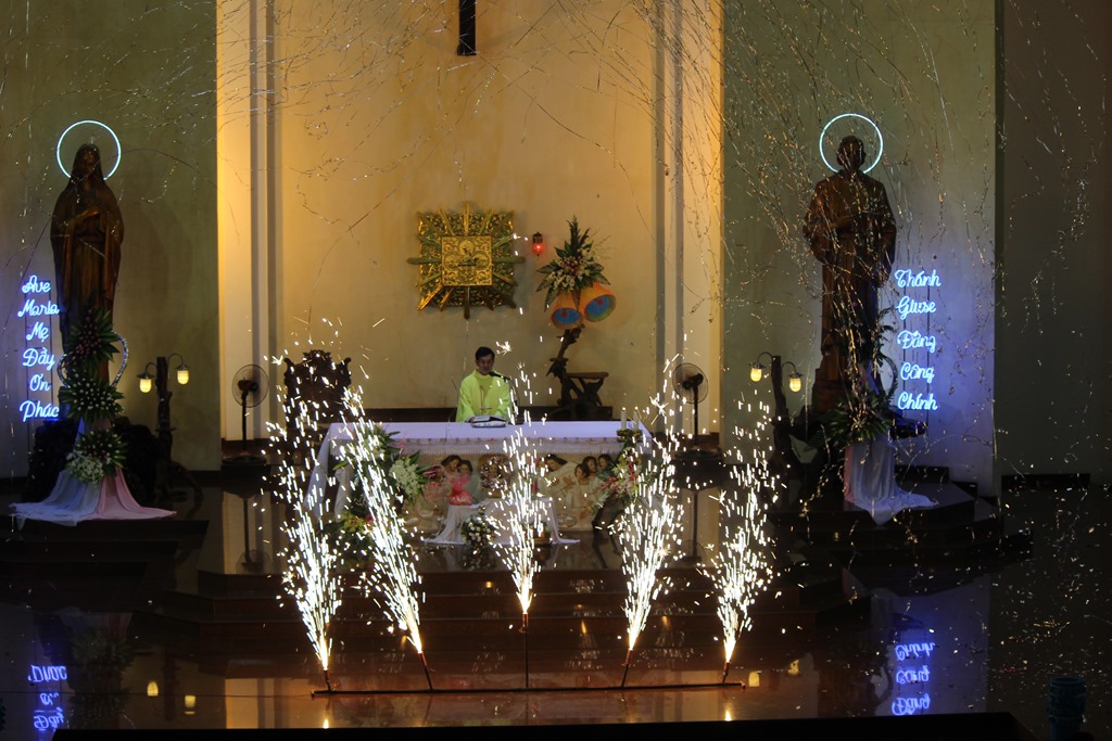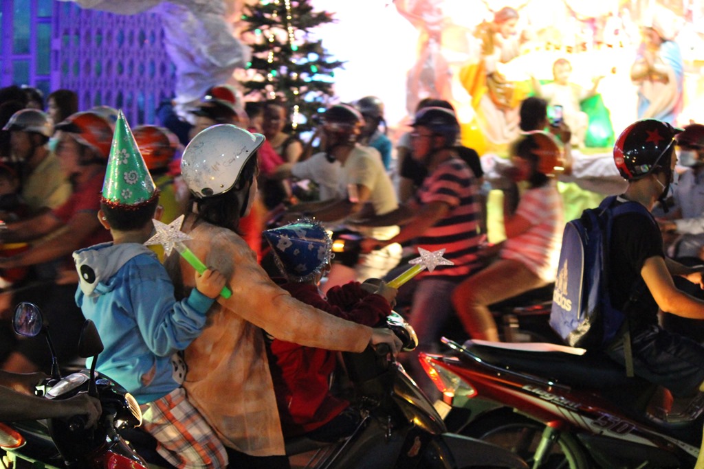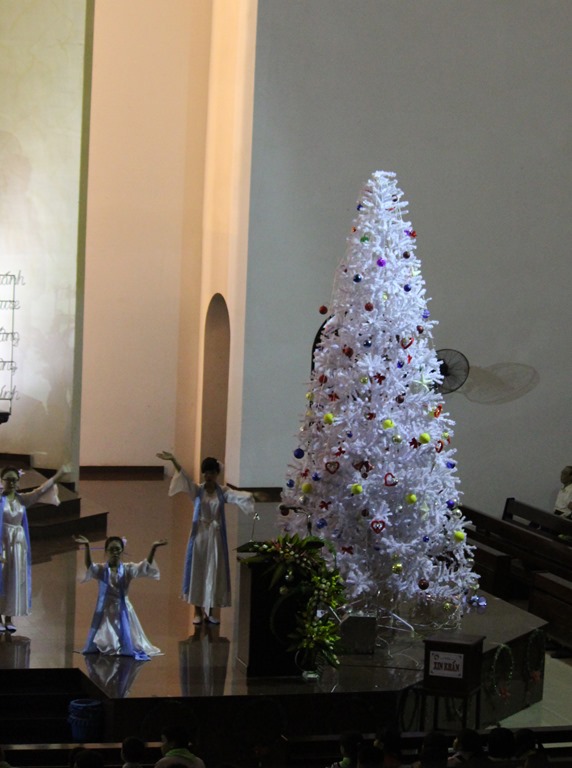 Le 24 décembre nous sommes allés, le soir, dans une paroisse vietnamienne pour assister à la messe de Noël. Superbe.