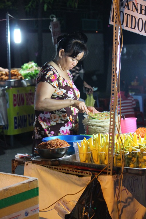 Crêpes que nous avons dégustées à la terrasse d’un petit café viet (des tables et des tabourets en plastique posés sur le trottoir!)