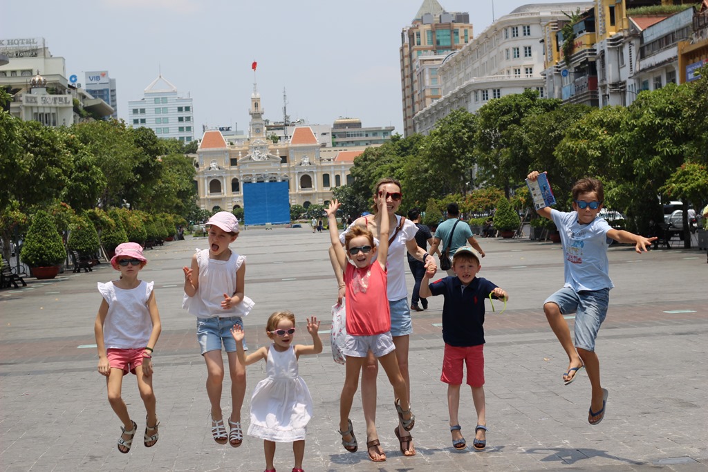 Guillemette, Valentine et Antonin ont passé une semaine à Saigon à la maison: repos, piscine, repos, marché aux tissus, repos, massage, repos, visite de la ville, moments entre cousins, bons moments entre belles sœurs, repos.