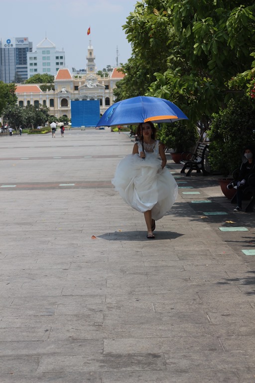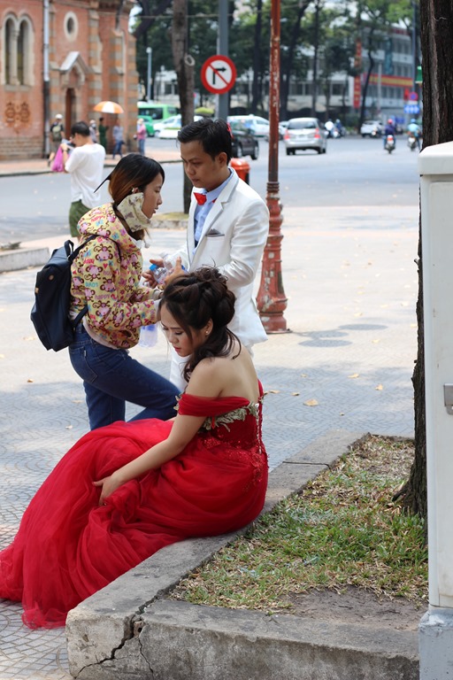 Pauvre mariée. Dans les parcs, devant les monuments souvent de l’époque coloniale, dans des décors années 40, les mariés prennent un journée pour faire des photos…