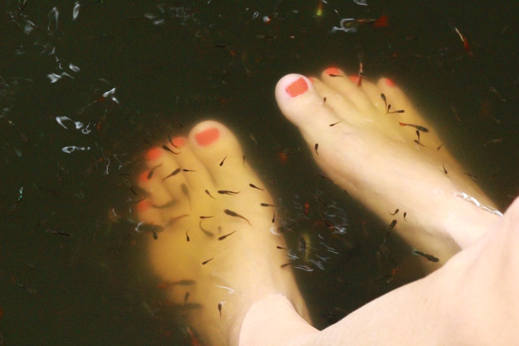 Ce sont ces petits poissons qui te grignotent? Impossible de ne pas rire! (photos des pieds d’Isa)