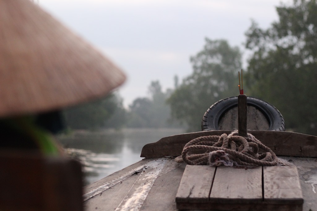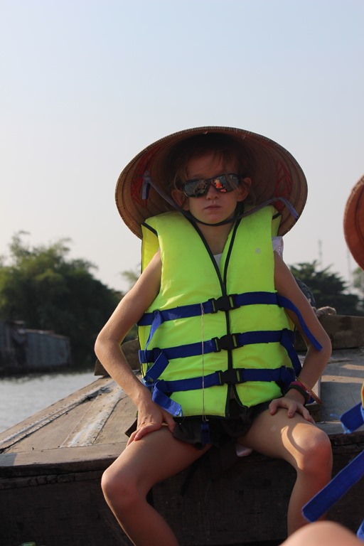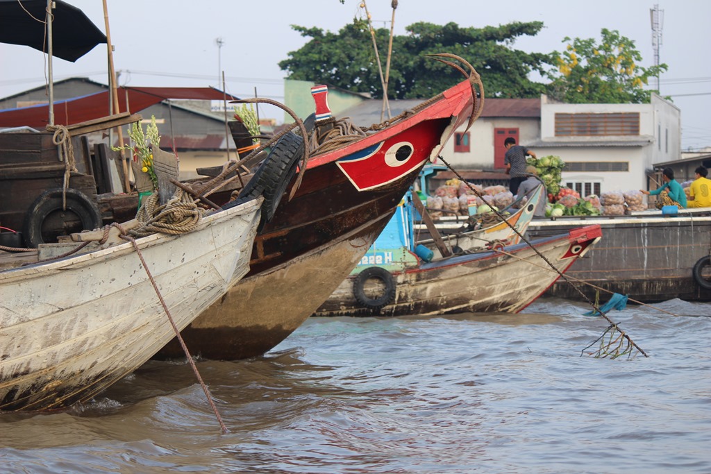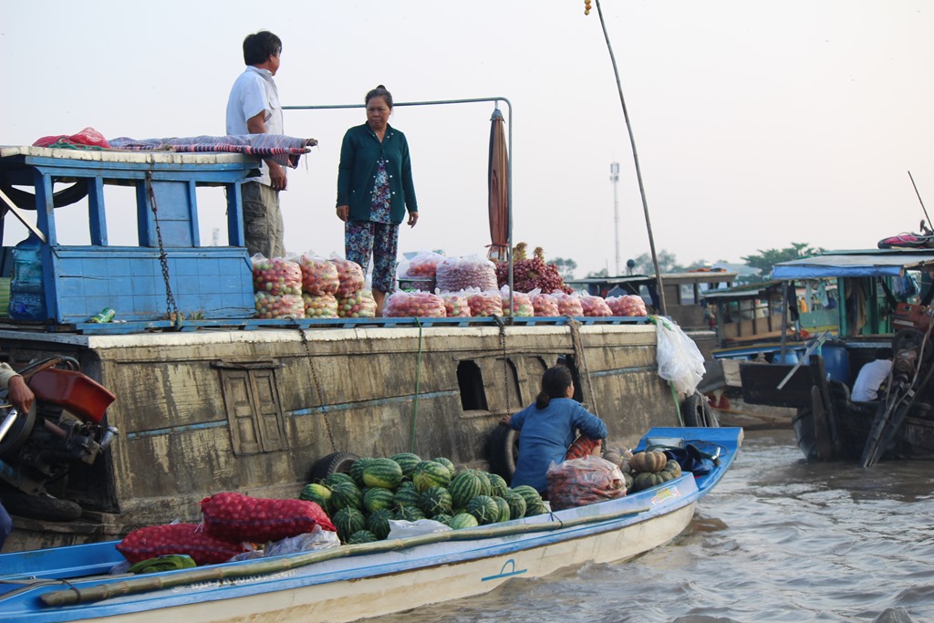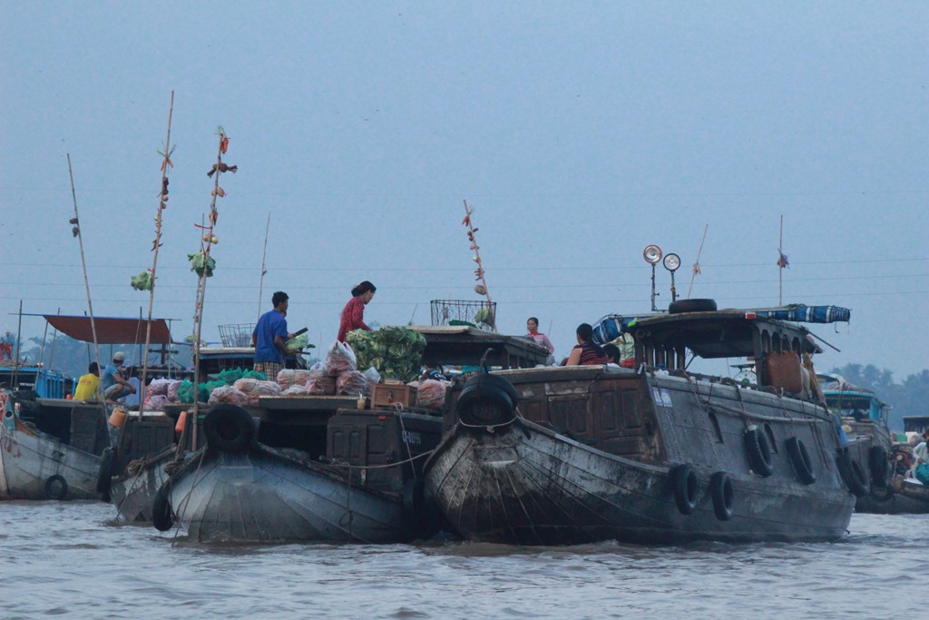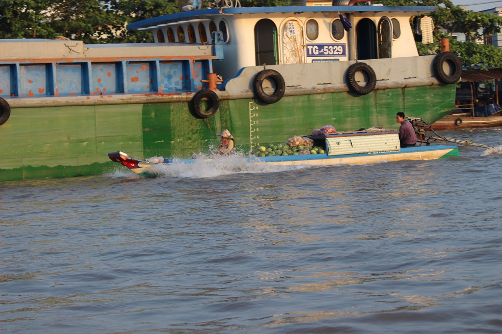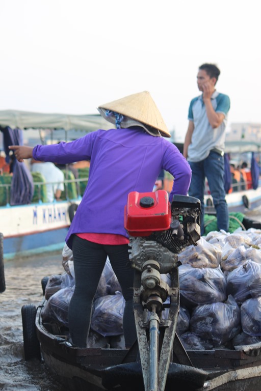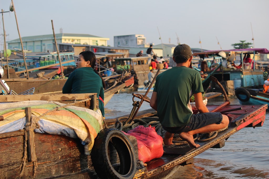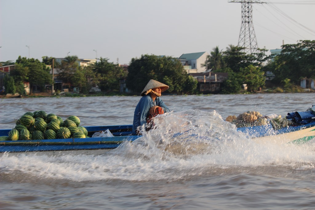 Nous partons en bateau voir les marchés flottants, typiques au delta du Mekong