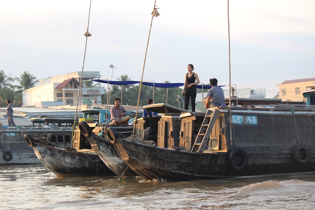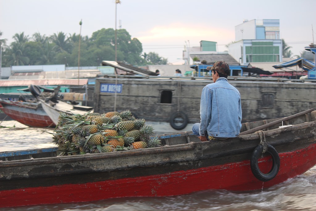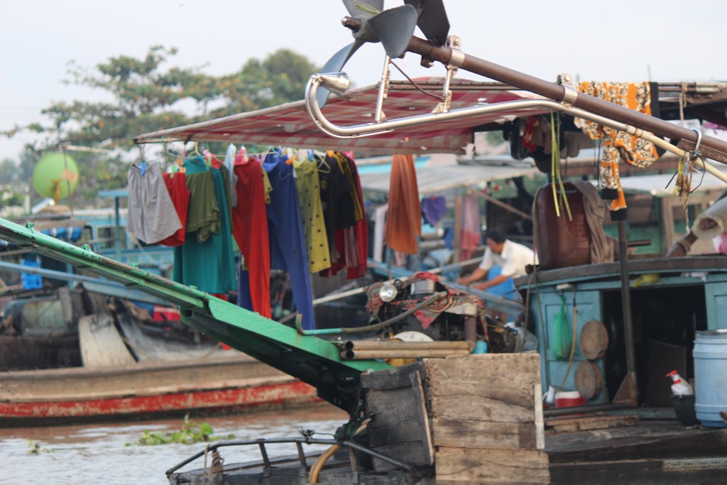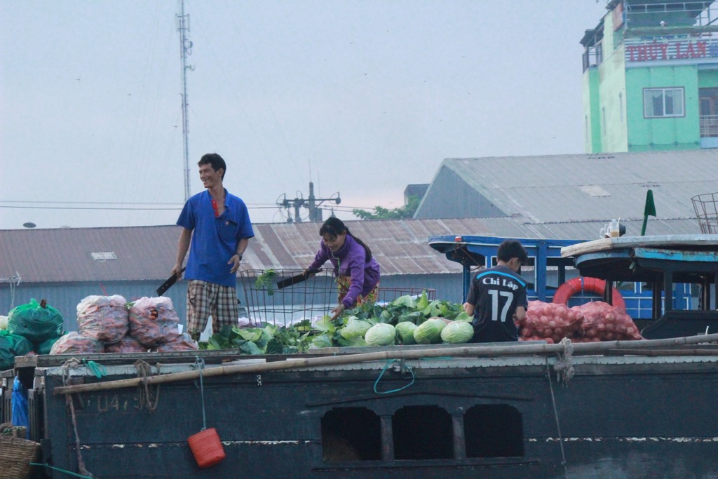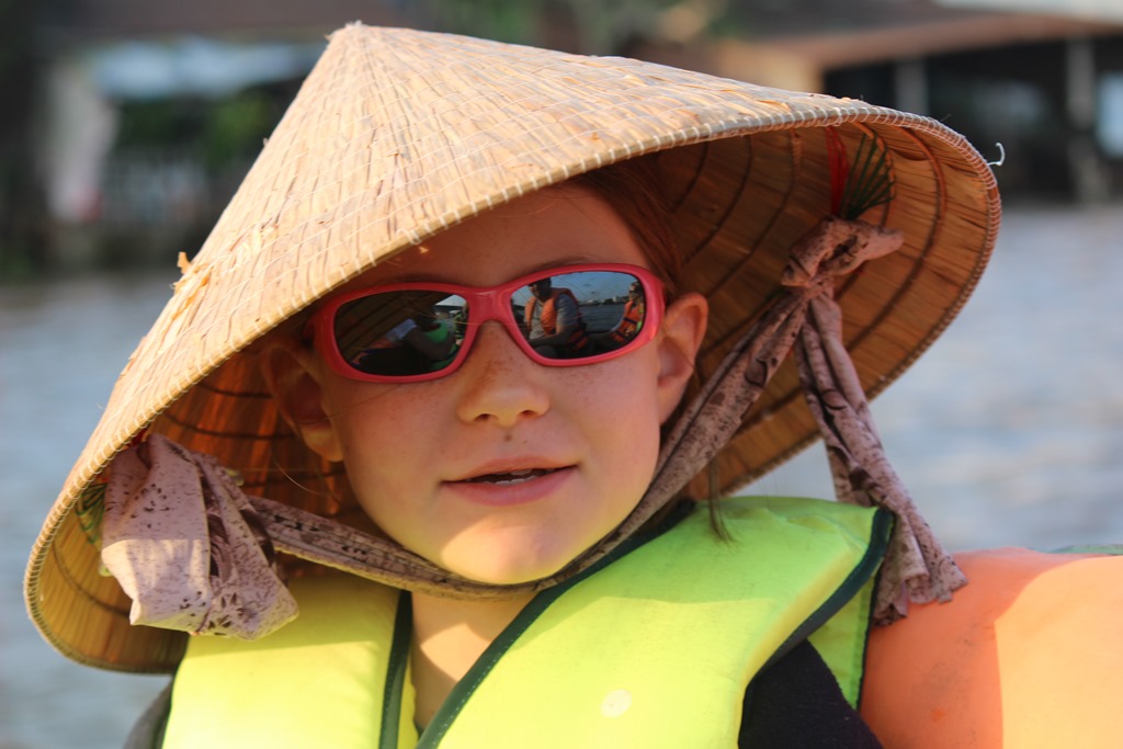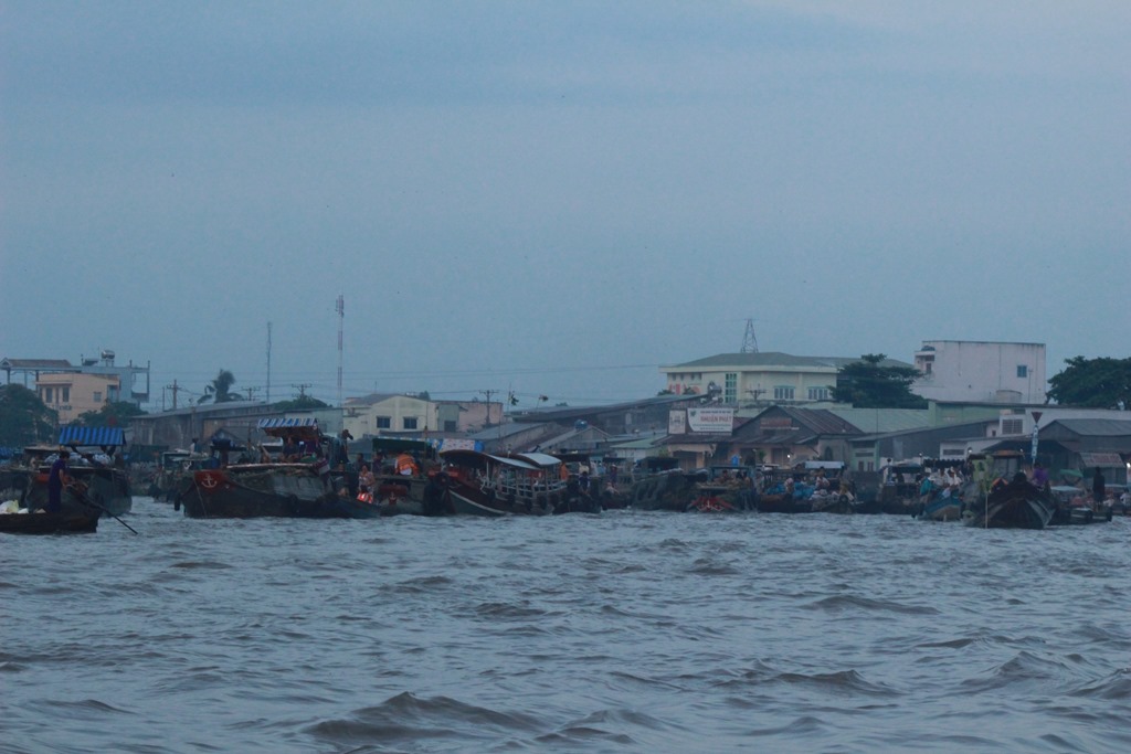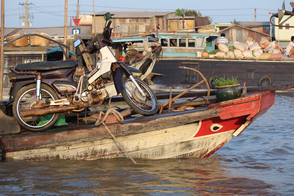 Nous partons en bateau voir les marchés flottants, typiques au delta du Mekong