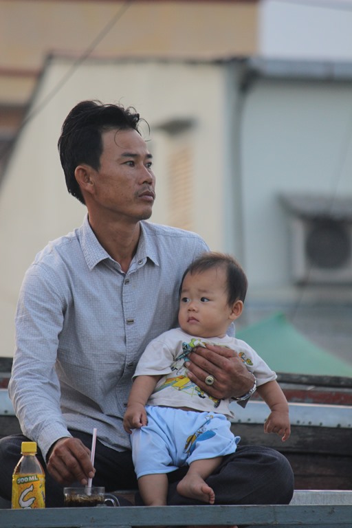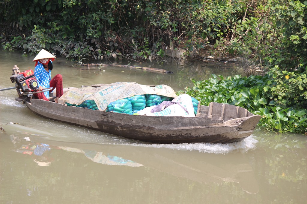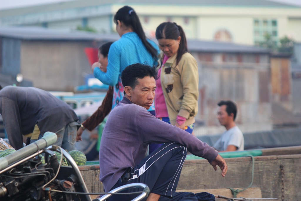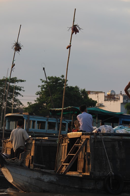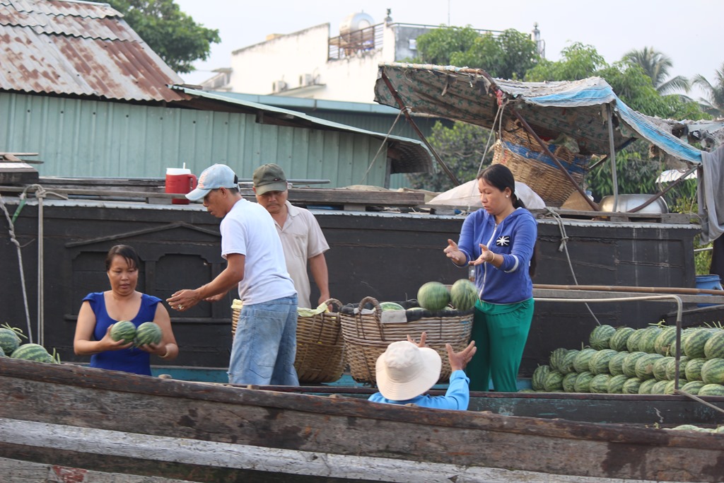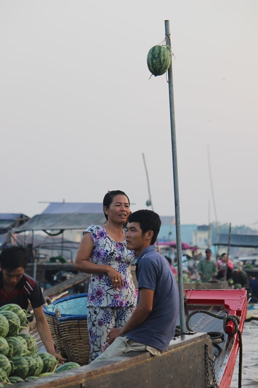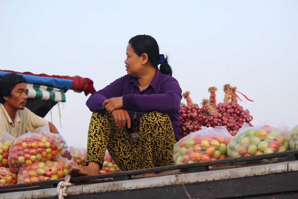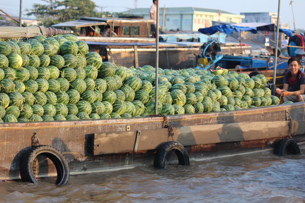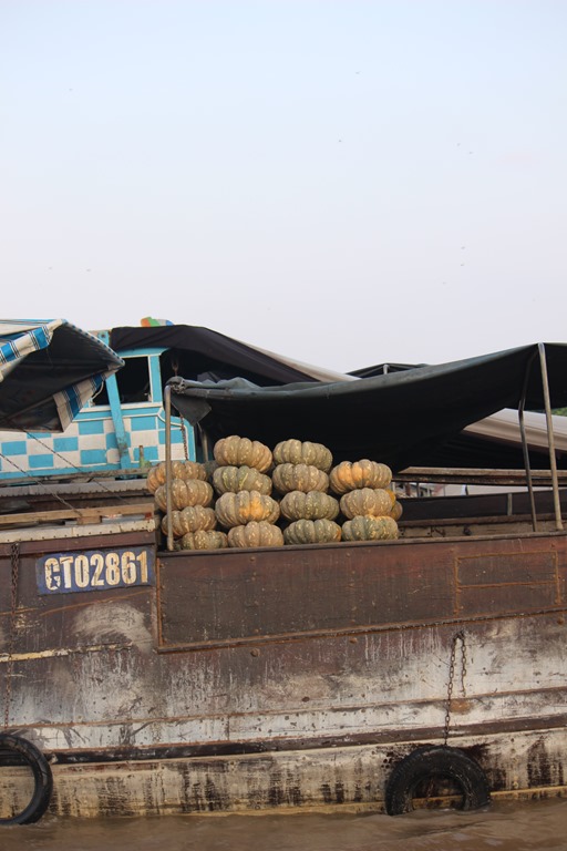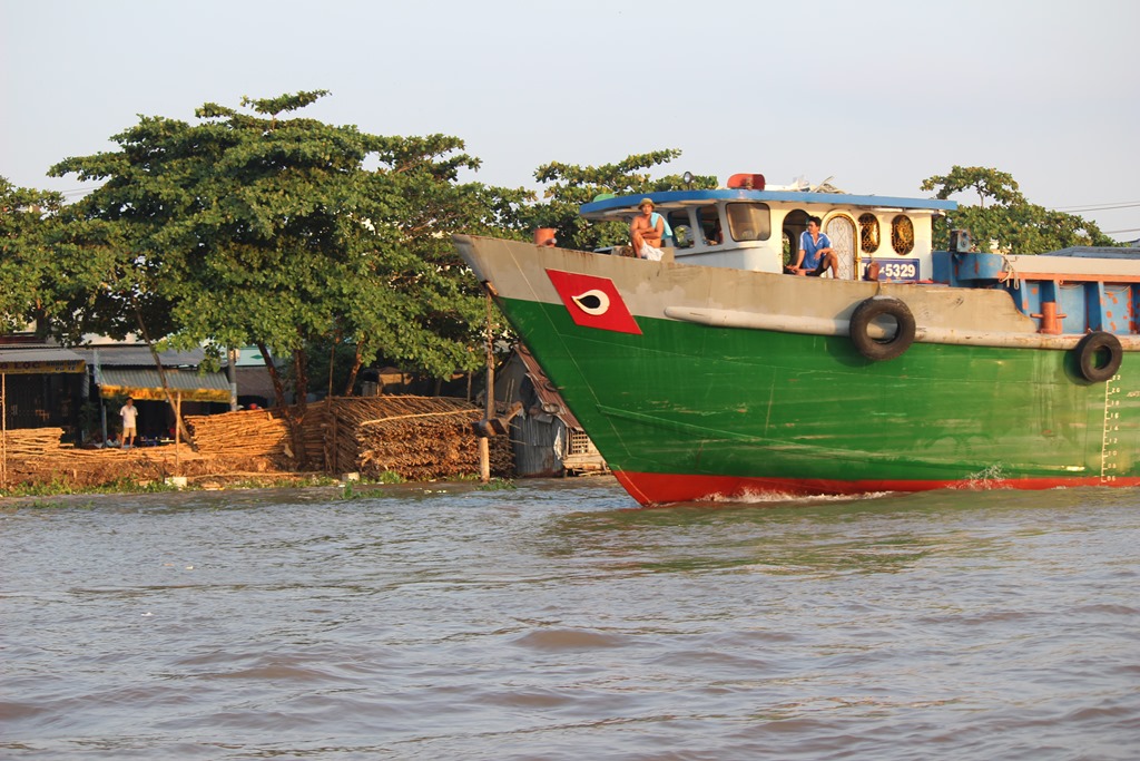 Nous partons en bateau voir les marchés flottants, typiques au delta du Mekong