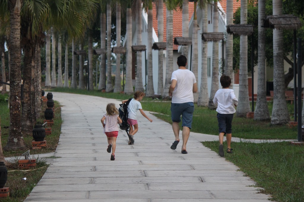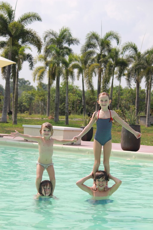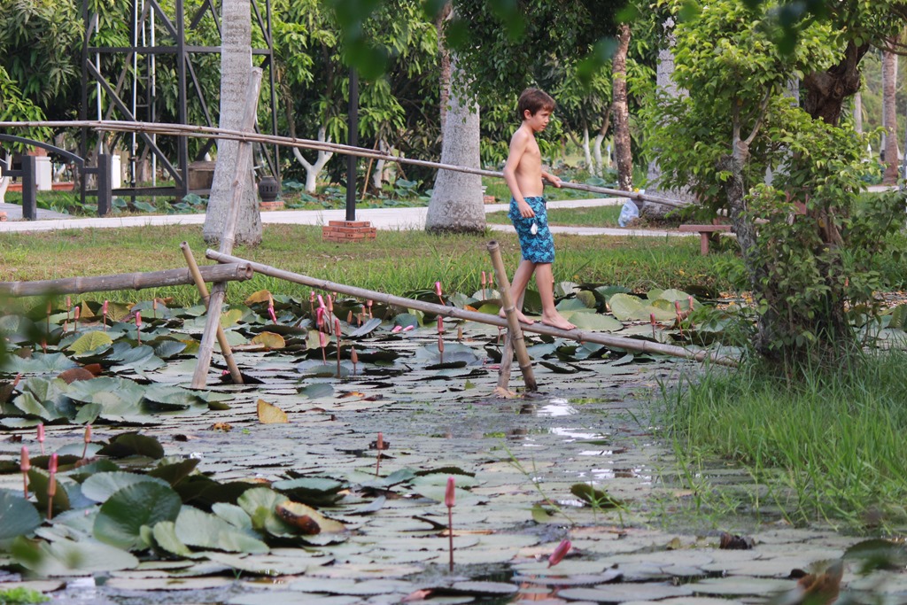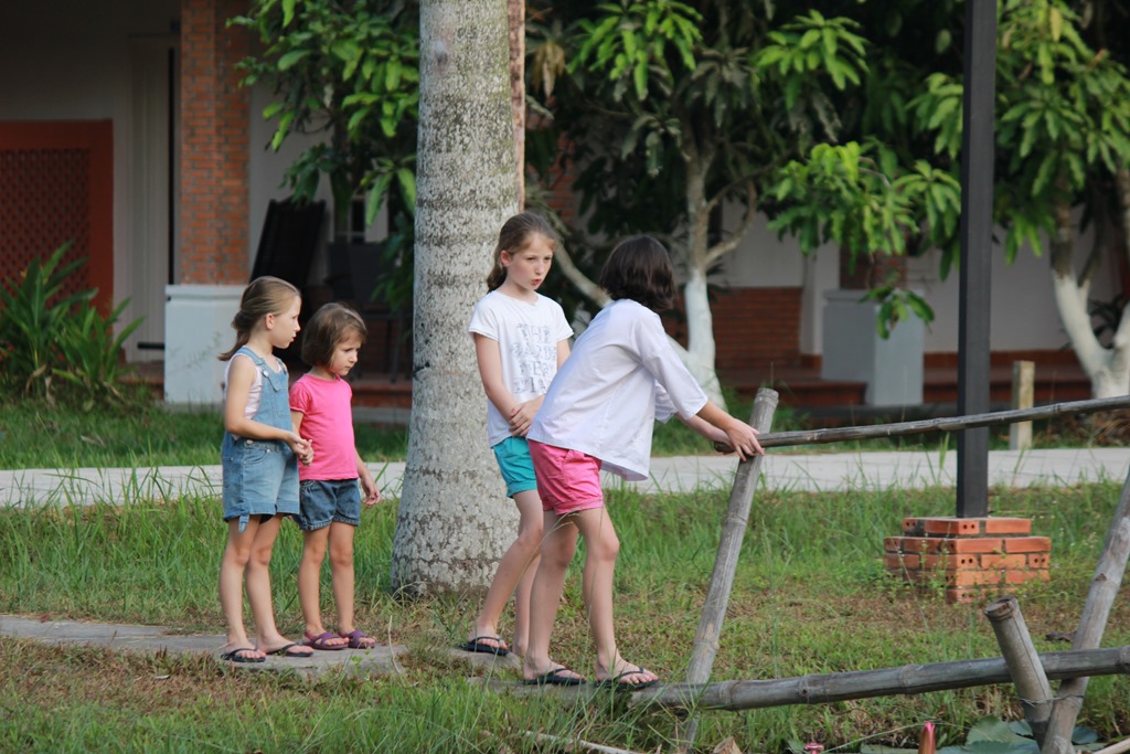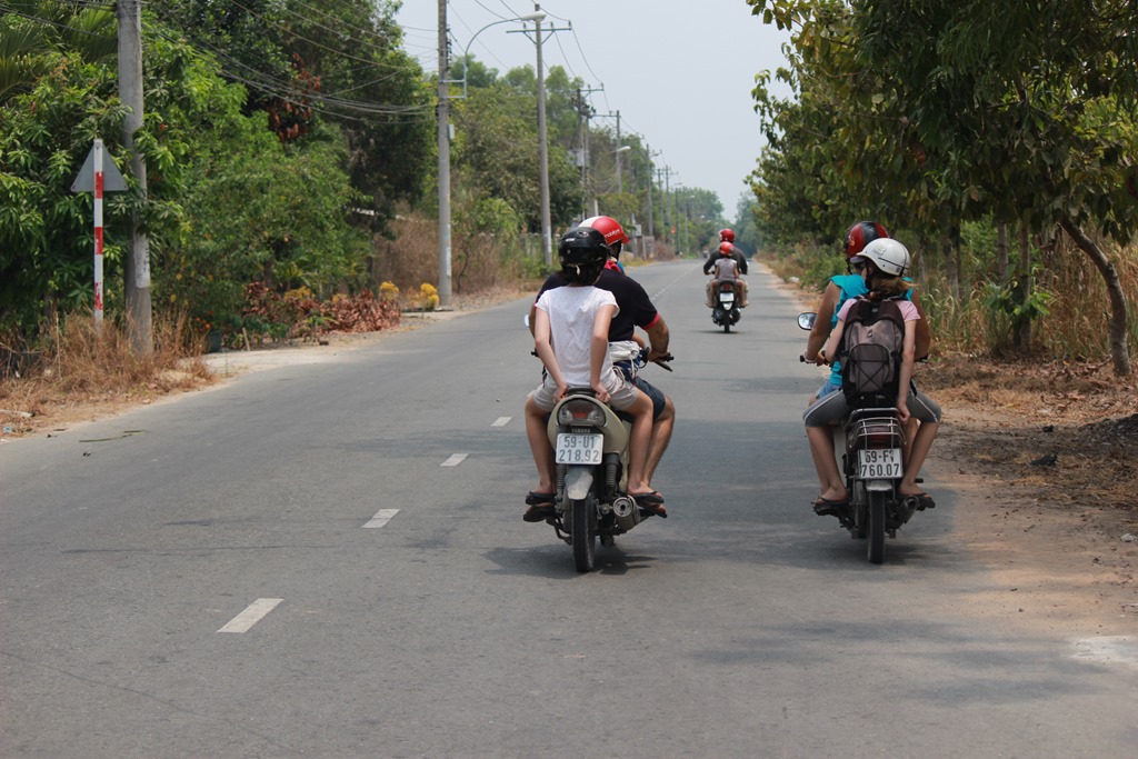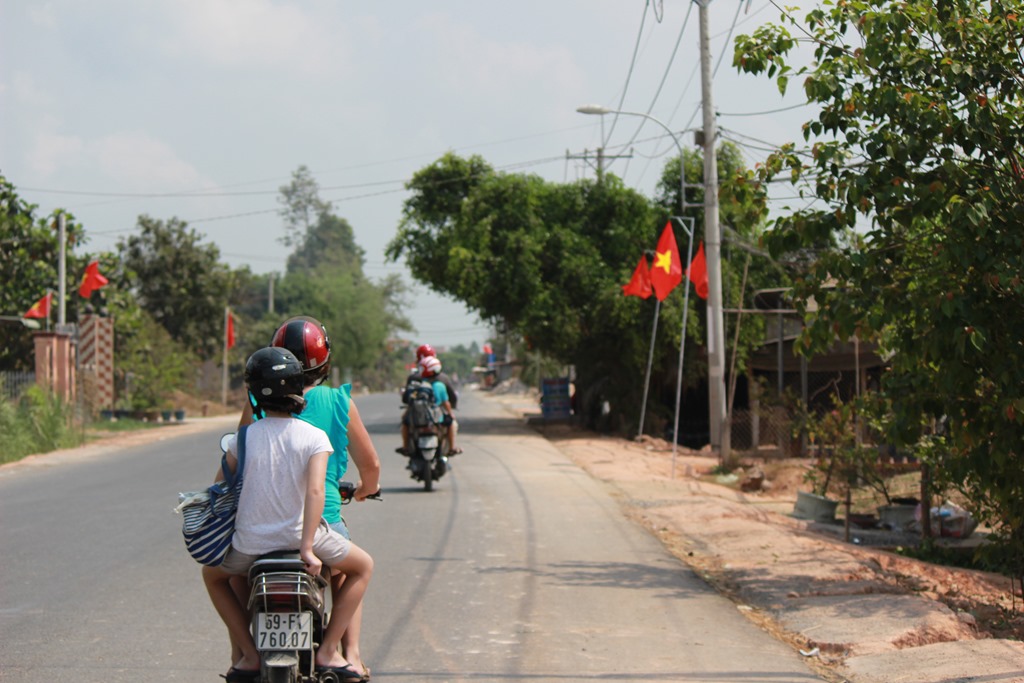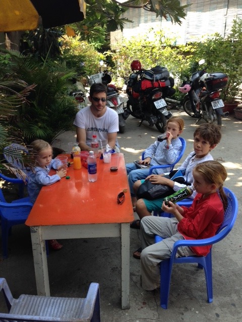 Premier Mai: Fête du travail: nous nous prenons trop tard pour partir en we un peu loin de Saigon alors direction Cuchi (haut lieu de la résistance communiste contre les américains, dans le sud) où nous retrouvons en fait Anne Sophie et Matthias et leurs 4 filles!