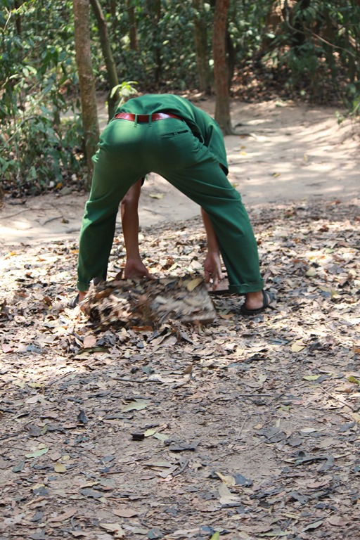 Nous nous baladons dans la forêt avec un Bo Doï (spéciale dédicace à GP). Ben est désigné comme volontaire…Pour quoi, on ne sait pas vraiment puisque nous ne voyons aucun trous, pas la moindre trace de tunnels…
