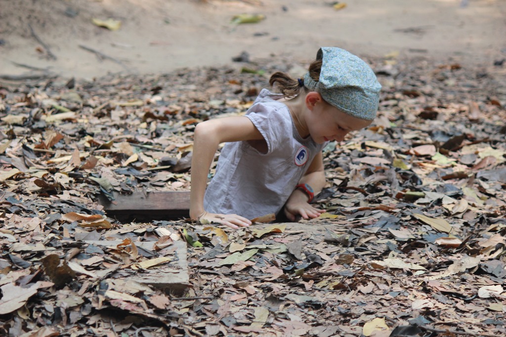 Cuchi: haut lieu de résistance Viet Cong, cuchi était l’un des points d’arrivée de la Piste Ho Chi Minh. La résistance fut essentiellement basé sur un gigantesque réseau de tunnels sous terrain: Initialement créés par le Viet Minh sous l’Indochine française (le réseau faisait alors une vingtaine de kilomètres), ces tunnels ont été considérablement développés lors du conflit américano-vietnamien pour atteindre environ 250 km.