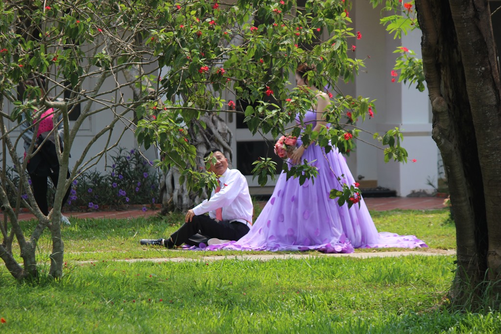 le jardin est superbe et fait la joie des futurs mariés. C’est traditionnel de réserver une journée de photos avant le mariage. Les mariés s’habillent de différents costumes et prennent la pause: années 50, année 2000, romantiques… l’horreur sous 45 degrés!