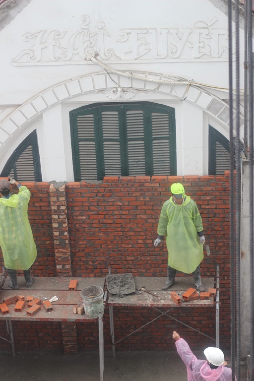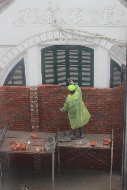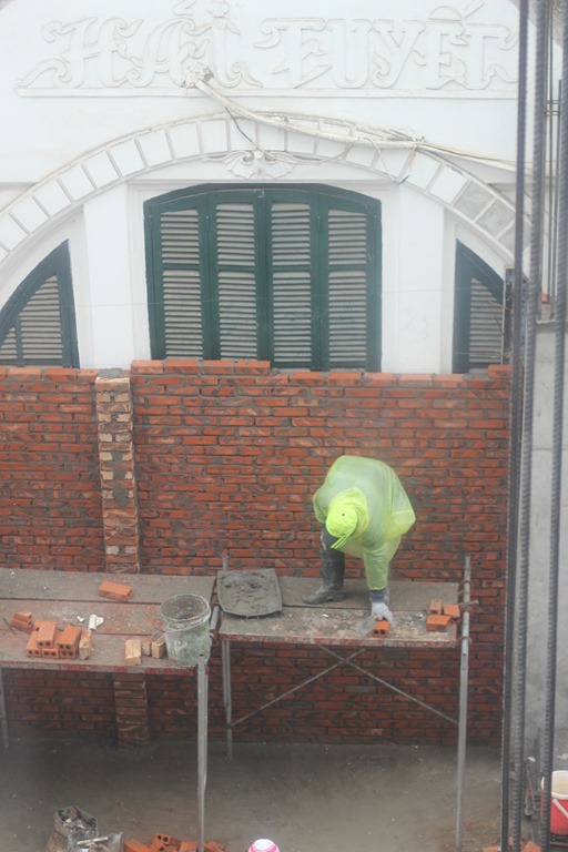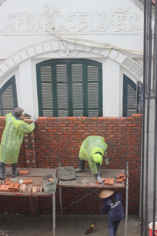 A propos d’appart: je vous parlais des constructions et des démolitions qui sont légion à Hanoi. Du jour au lendemain, la maison en face de chez vous est détruite et du jour au lendemain on vous annonce qu’un immeuble de 8 étages va rendre une partie de chez vous aveugle…Justement coté chambre de Malo et Violette dans notre appart: