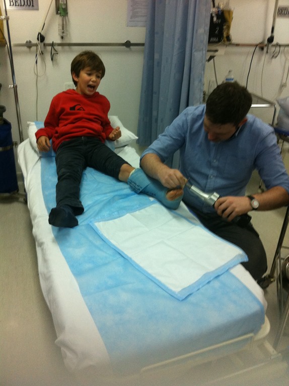 Malo s’est fait enlevé son plâtre: A lui la liberté…mais la vraie marche est difficile: il a encore mal…On retourne voir le doc dans 1 heure!