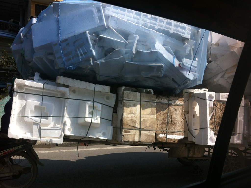 Là, depuis mon taxi, le chargement était tel que j’ai du prendre 2 photos!