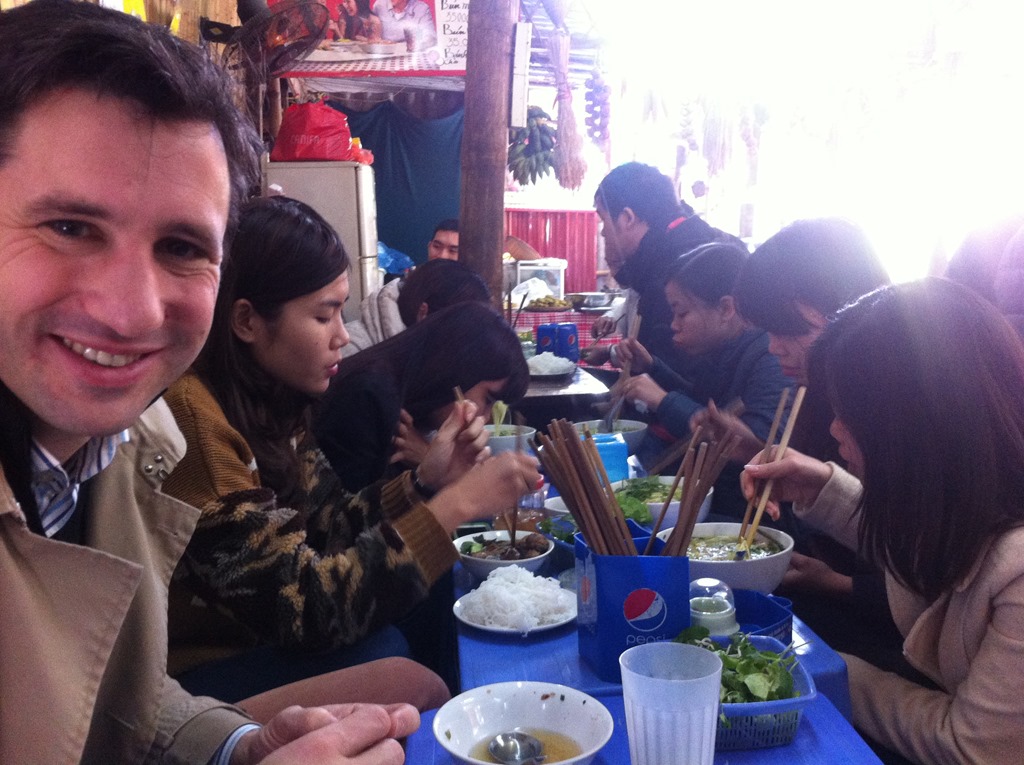 Avant toutes choses il faut vous dire que nous avons une chance incroyable. On nous avait dit qu’on ne verrait pas le soleil à Hanoi,que le ciel était gris une grande partie de l’année et que l’hivers était froid à cause de l’humidité…Et bien à part 4 jours de pluie nous sommes gâtés: beau temps, ciel bleu, températures agréables! Tout le monde nous dit de profiter alors on profite!