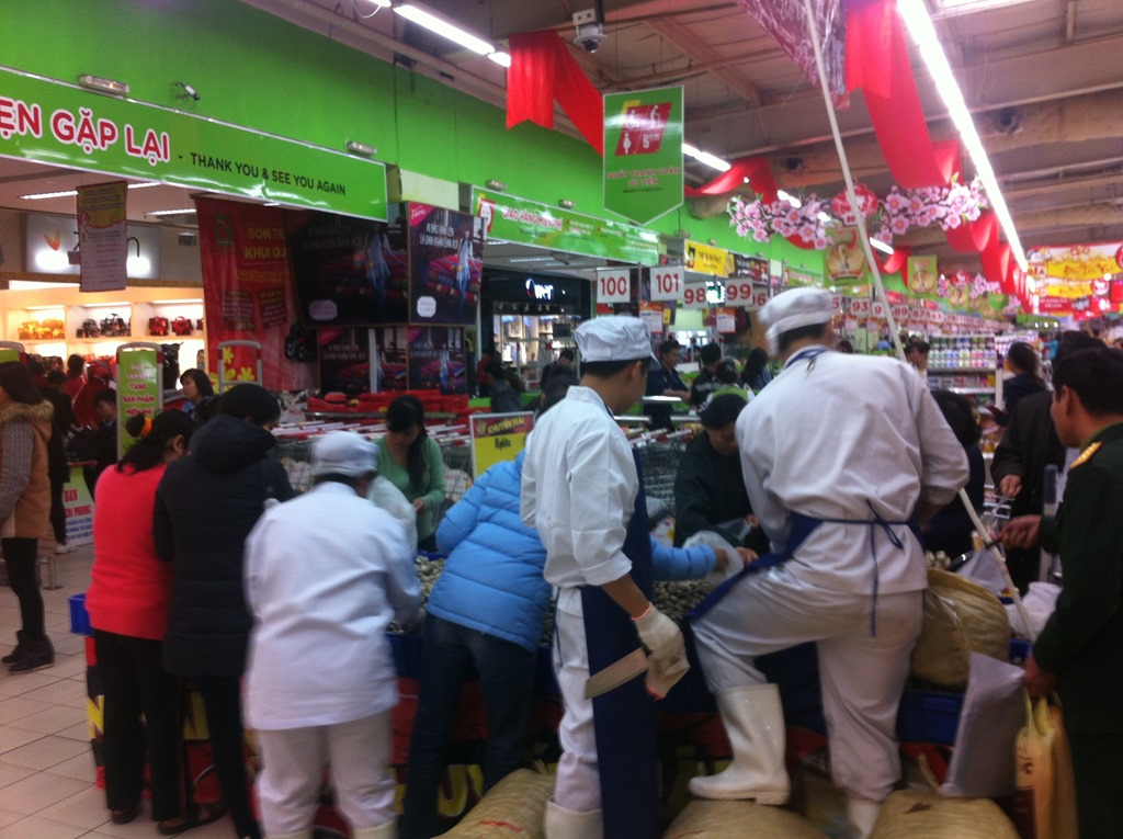 Notre aventure au Big C, grand supermarché… Du bruit, beaucoup de bruit (la musique de l’hyper à fond, la musique du stand Hi-Fi encore plus à fond et les annonces incompréhensibles au micro encore plus plus à fond!!), des produits inconnus, insoupçonnables et incroyables…