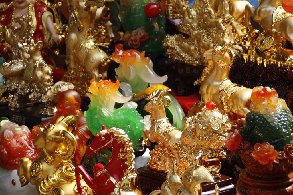 Des bougies, des pétards, des pochettes de “Luky Money”, de l’encens