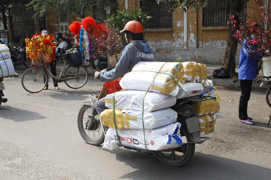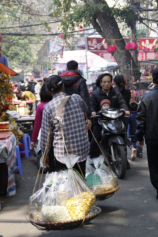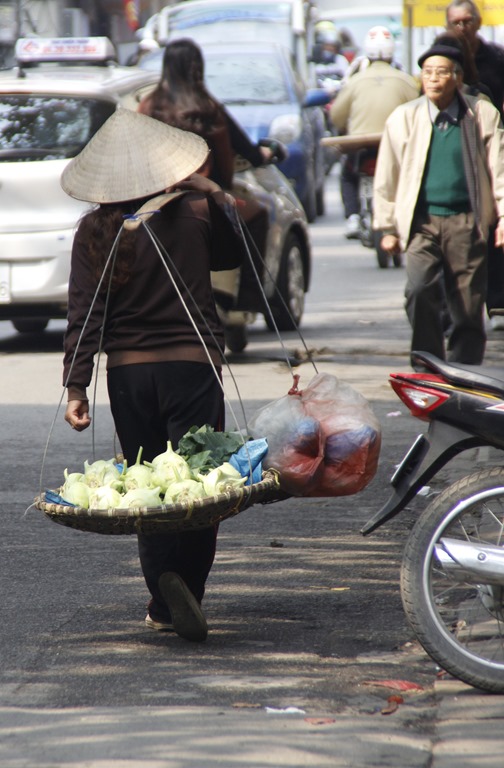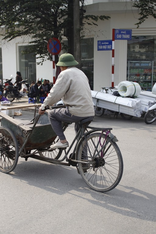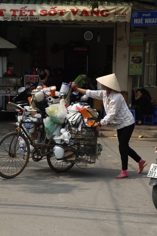 A Hanoi le spectacle est dans la rue et en particulier sur les deux roues. Tout se fait en moto donc forcément on en voit des choses: Des motos chargées, des motos familiales, des motos ambulance, des motos primeurs, des motos épicerie, des motos “Tout à 10 francs”, des motos fleuristes, des motos poubelles…